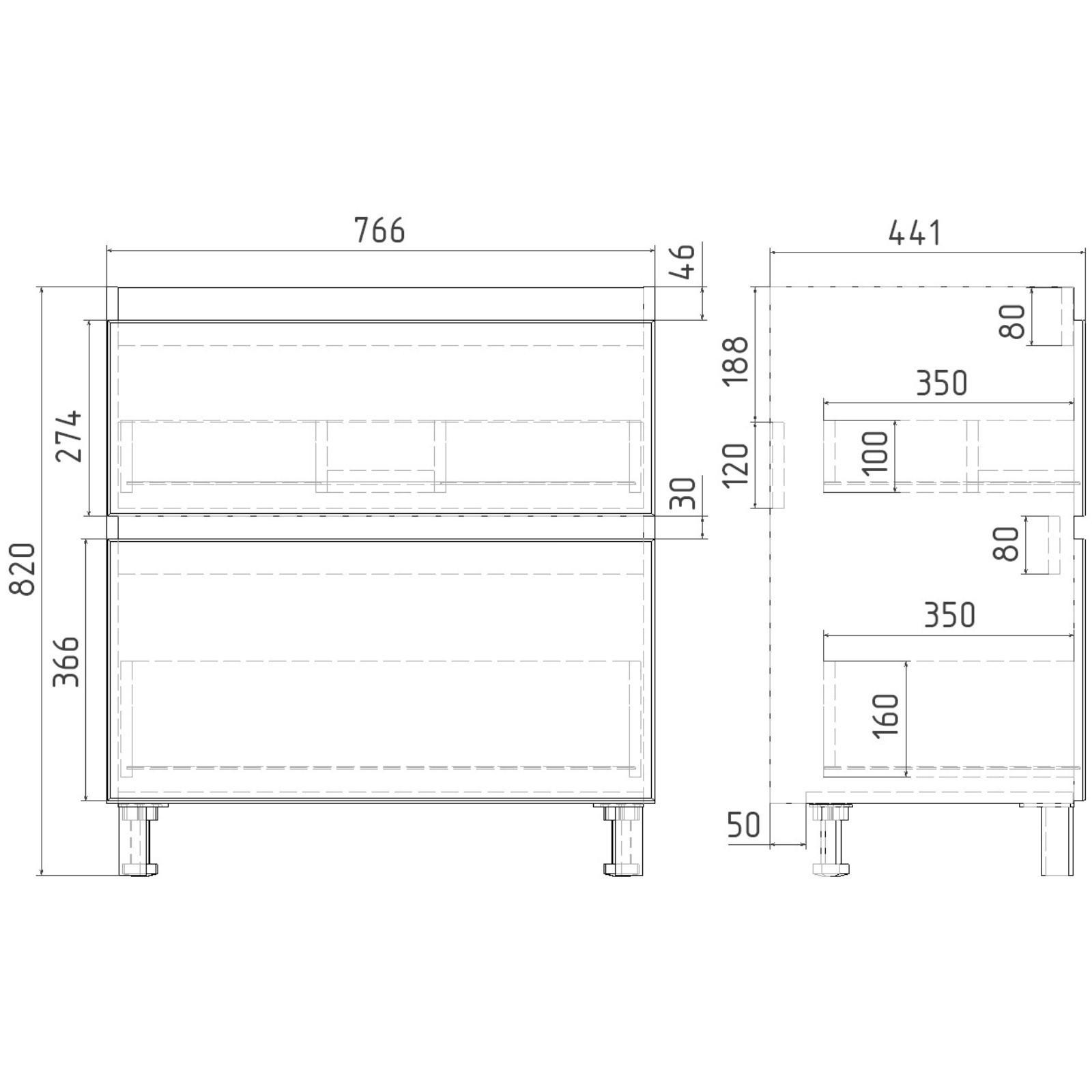 Тумба VIANT «Мальта» 2 ящика, 425х760х820 мм, с раковиной COMO 80