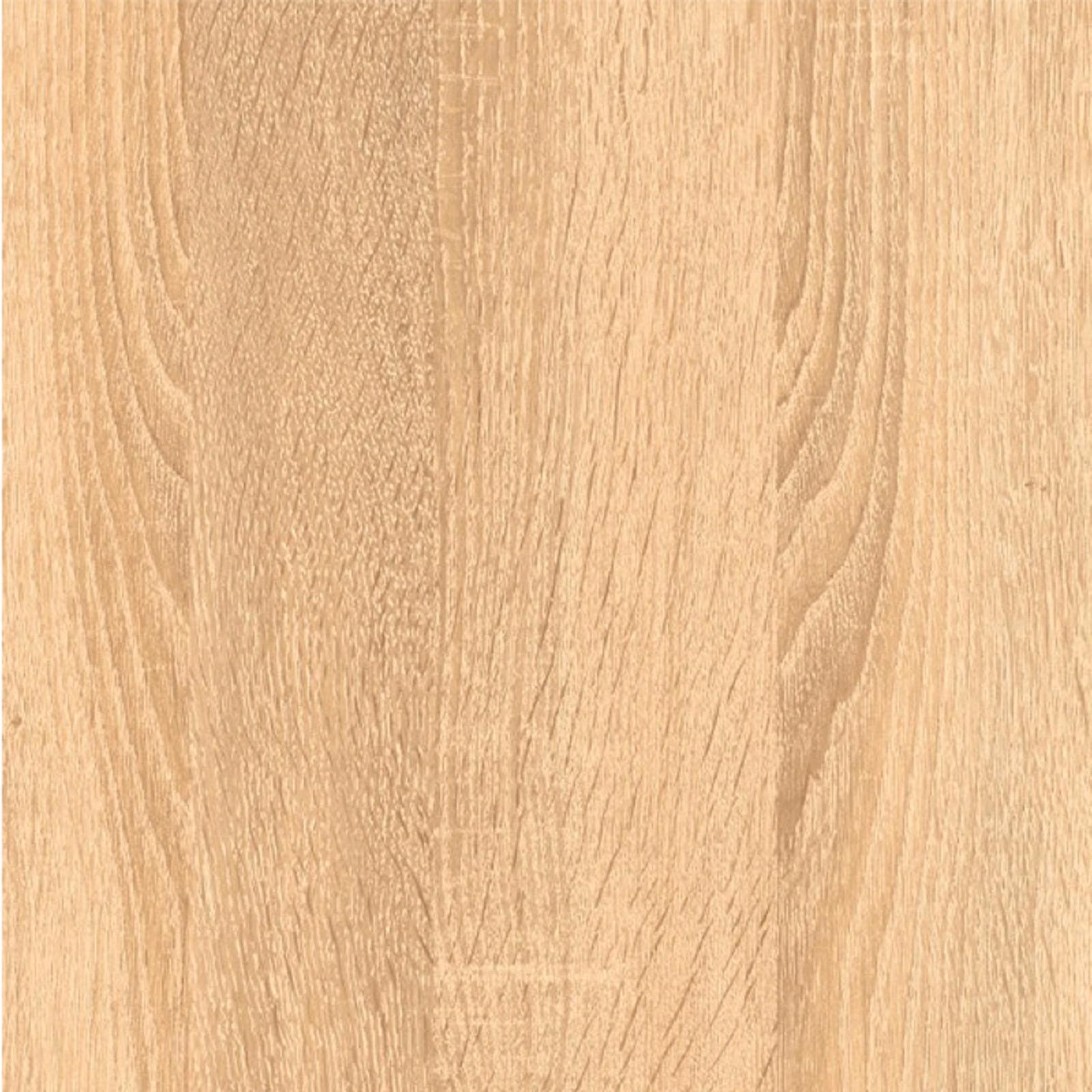 Корпус тумбы и фасад изготовлены из влагостойкого ЛДСП цвета «дуб сонома». Она оборудована двумя распашными дверцами, которые плавно закрываются. За створками расположена вертикальная перегородка по центру, к ней прикреплена горизонтальная полка с правой стороны.