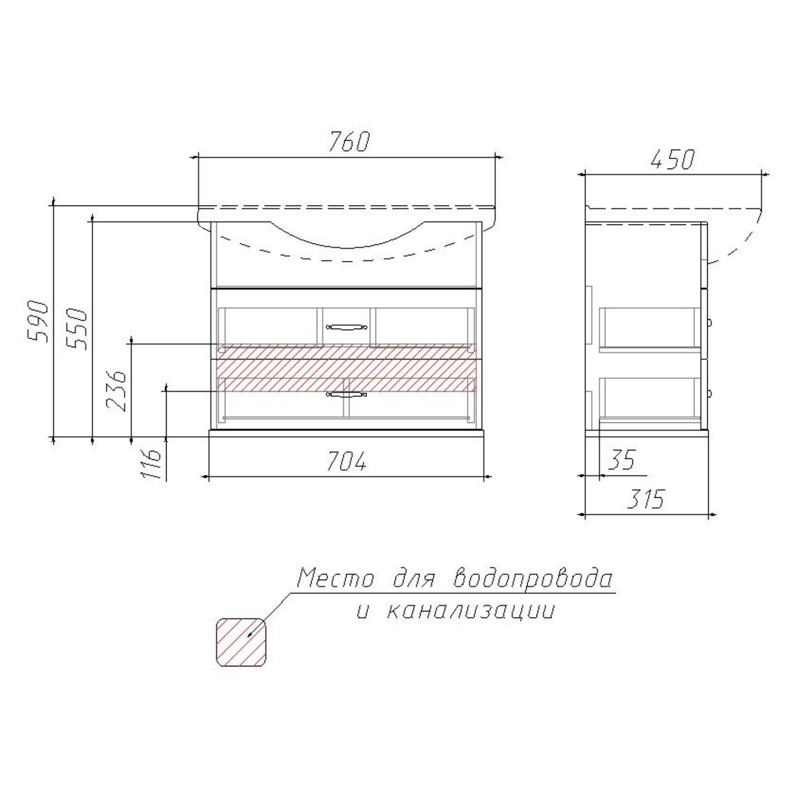 Тумба с раковиной "Элеганс 75 Belle" В2