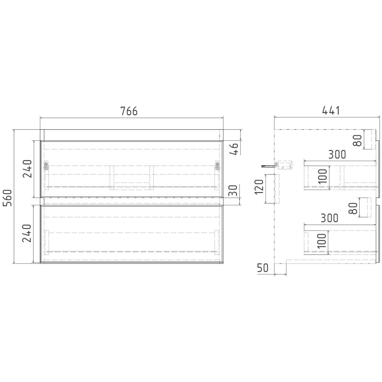 Тумба VIANT «Мальта» 2 ящика, подвесная, 425х760х560 мм, с раковиной COMO 80