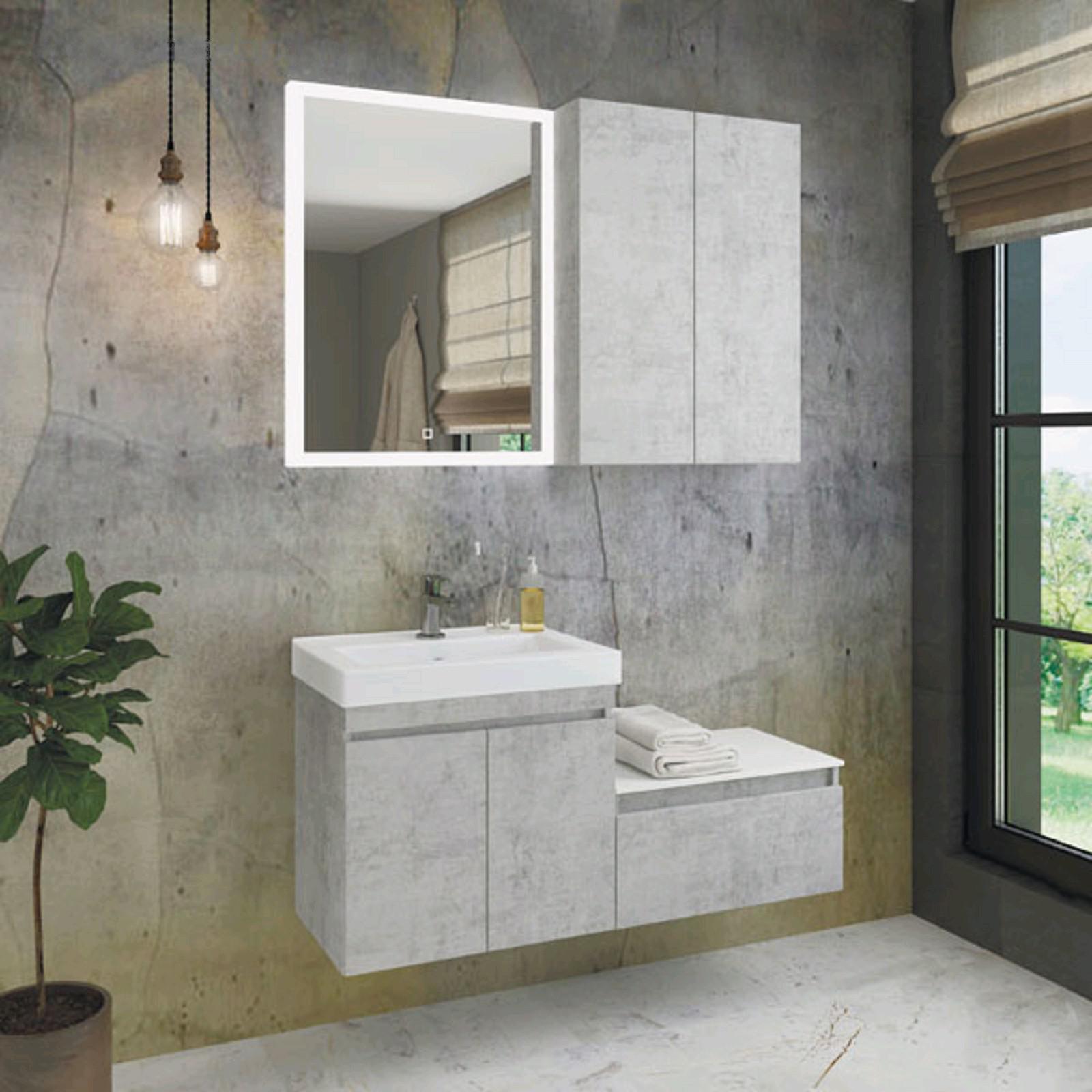 Тумба подвесная COMFORTY «Осло-60», бетон светлый с белой столешницей