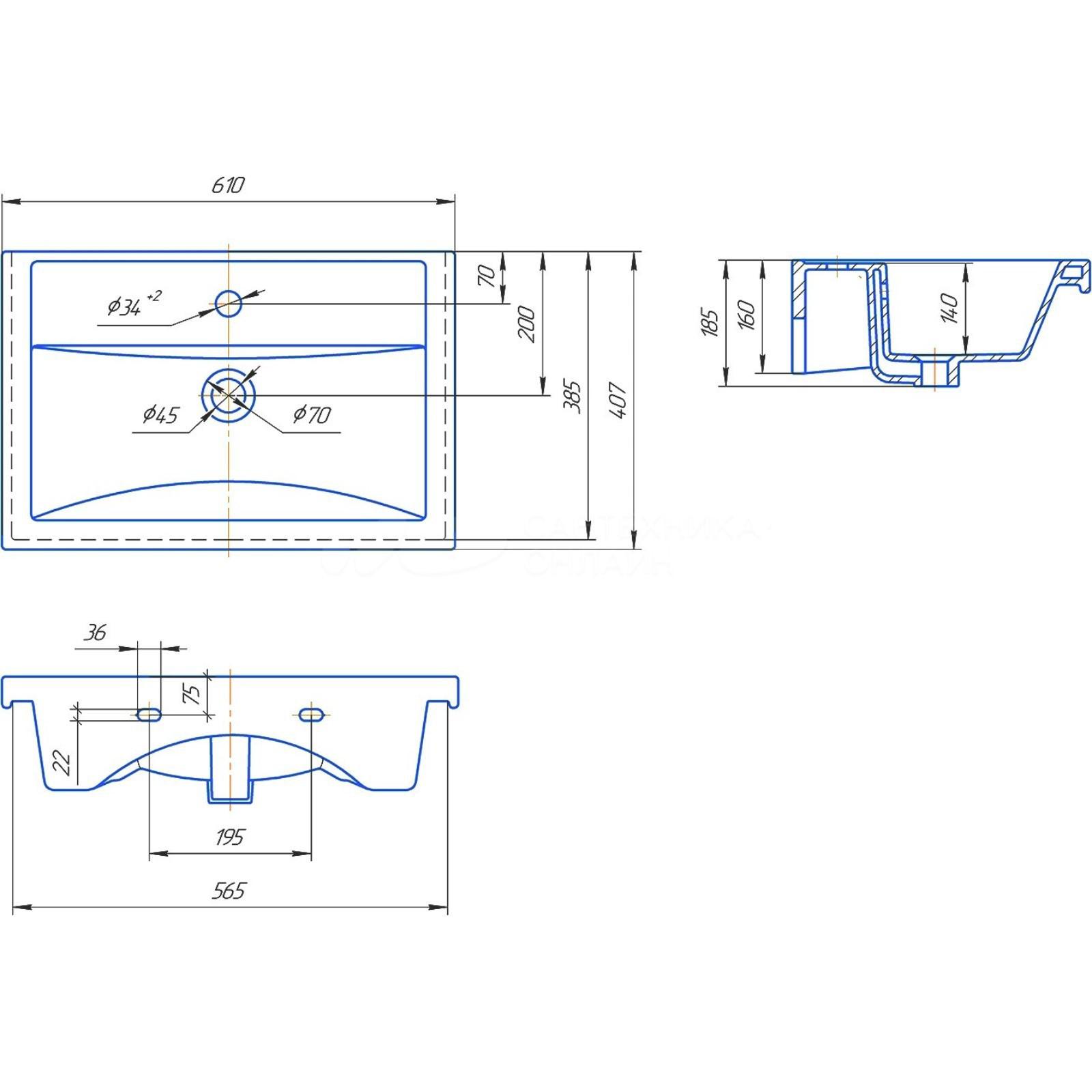 Тумба "Арно" с раковиной "Фостер" 60 см, дуб сонома