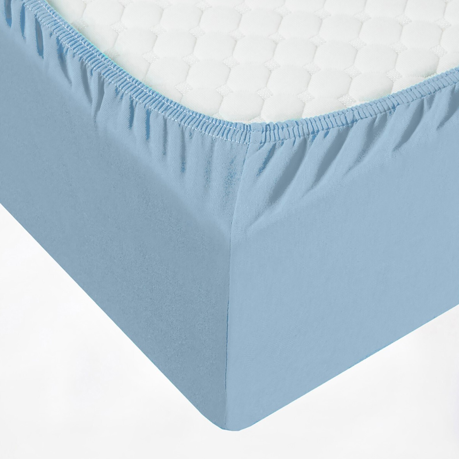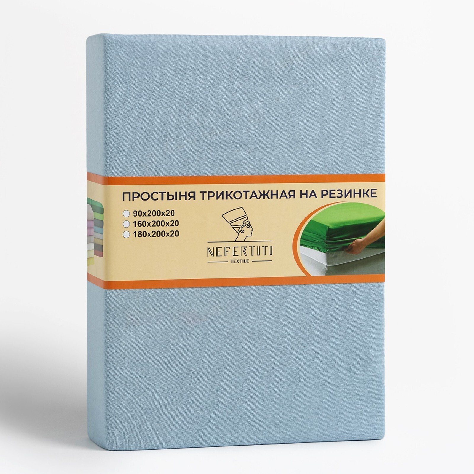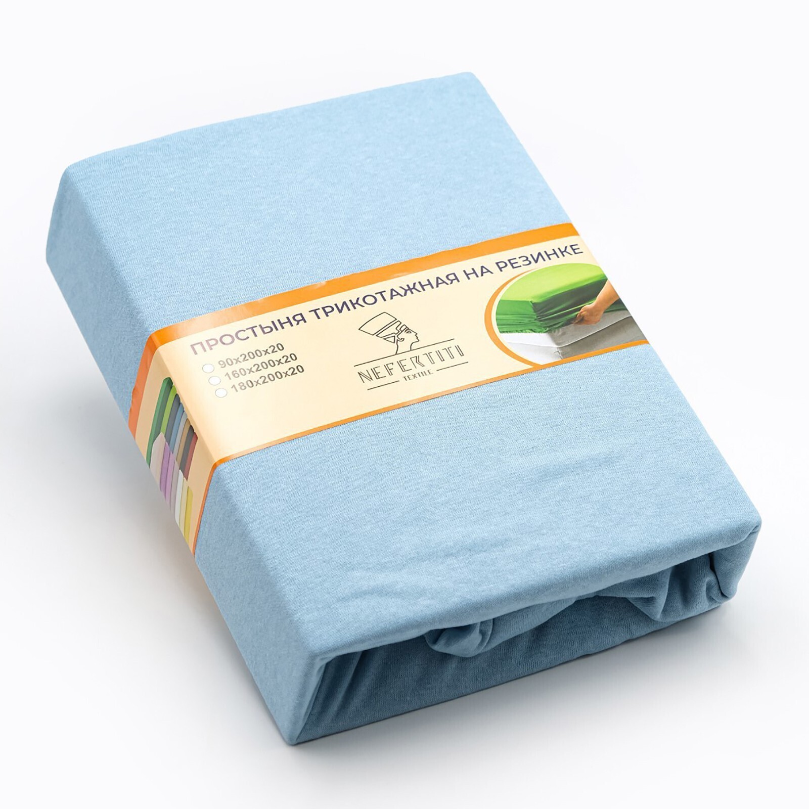 Трикотажная простынь на резинке 160х200х20см, цвет голубой, кулирка, 115г/м 100% хлопок