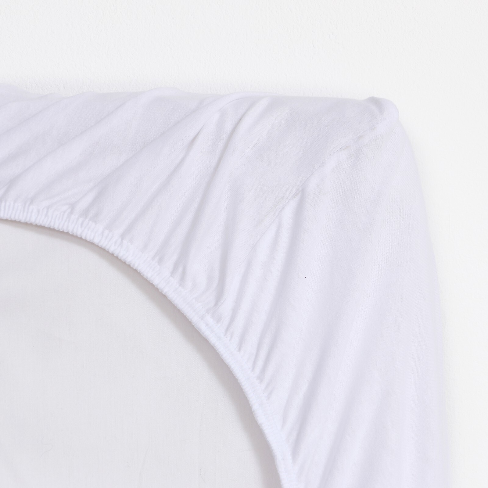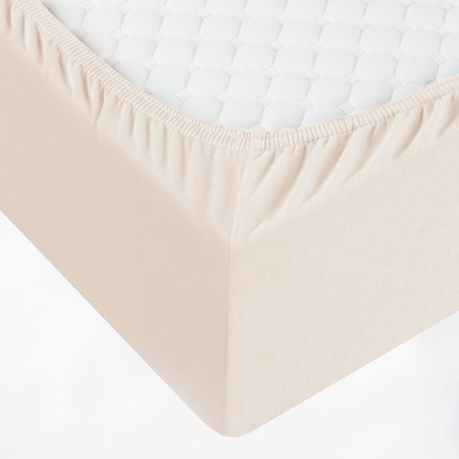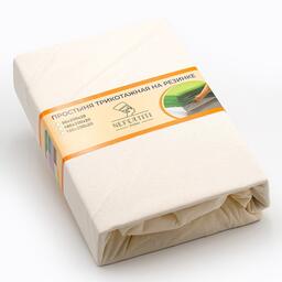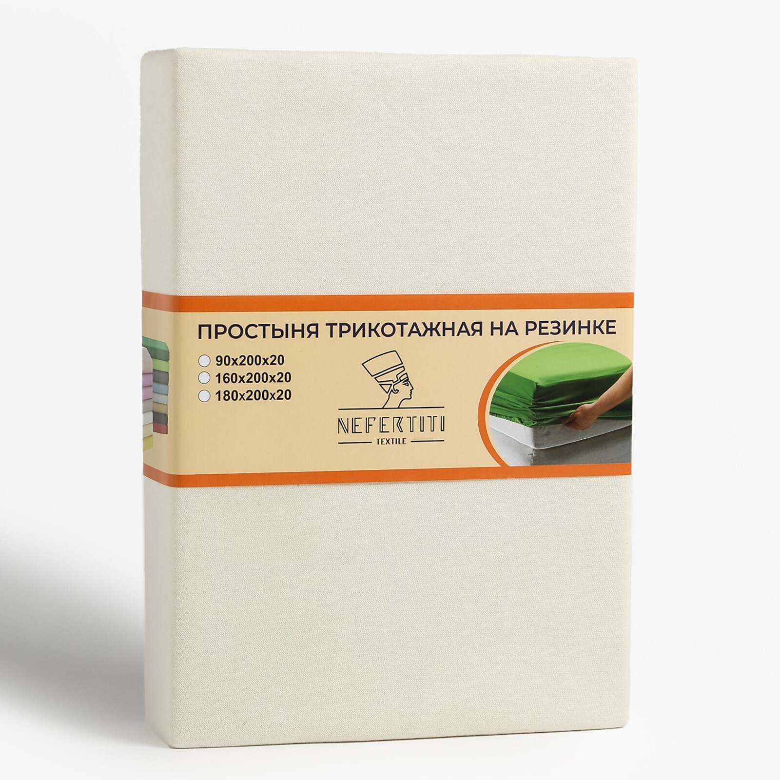 Трикотажная простынь на резинке 160х200х20см, цвет экрю, кулирка, 115г/м 100% хлопок