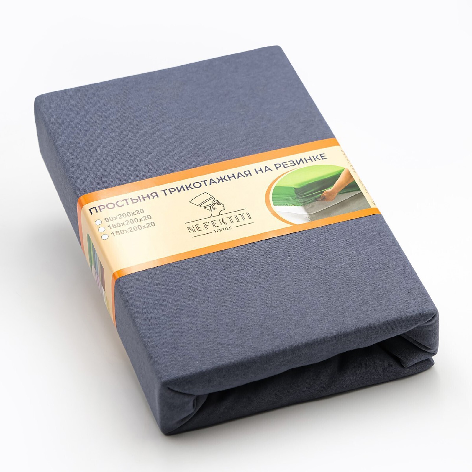Трикотажная простынь на резинке 160х200х20см, цвет графит, кулирка, 115г/м 100% хлопок