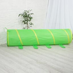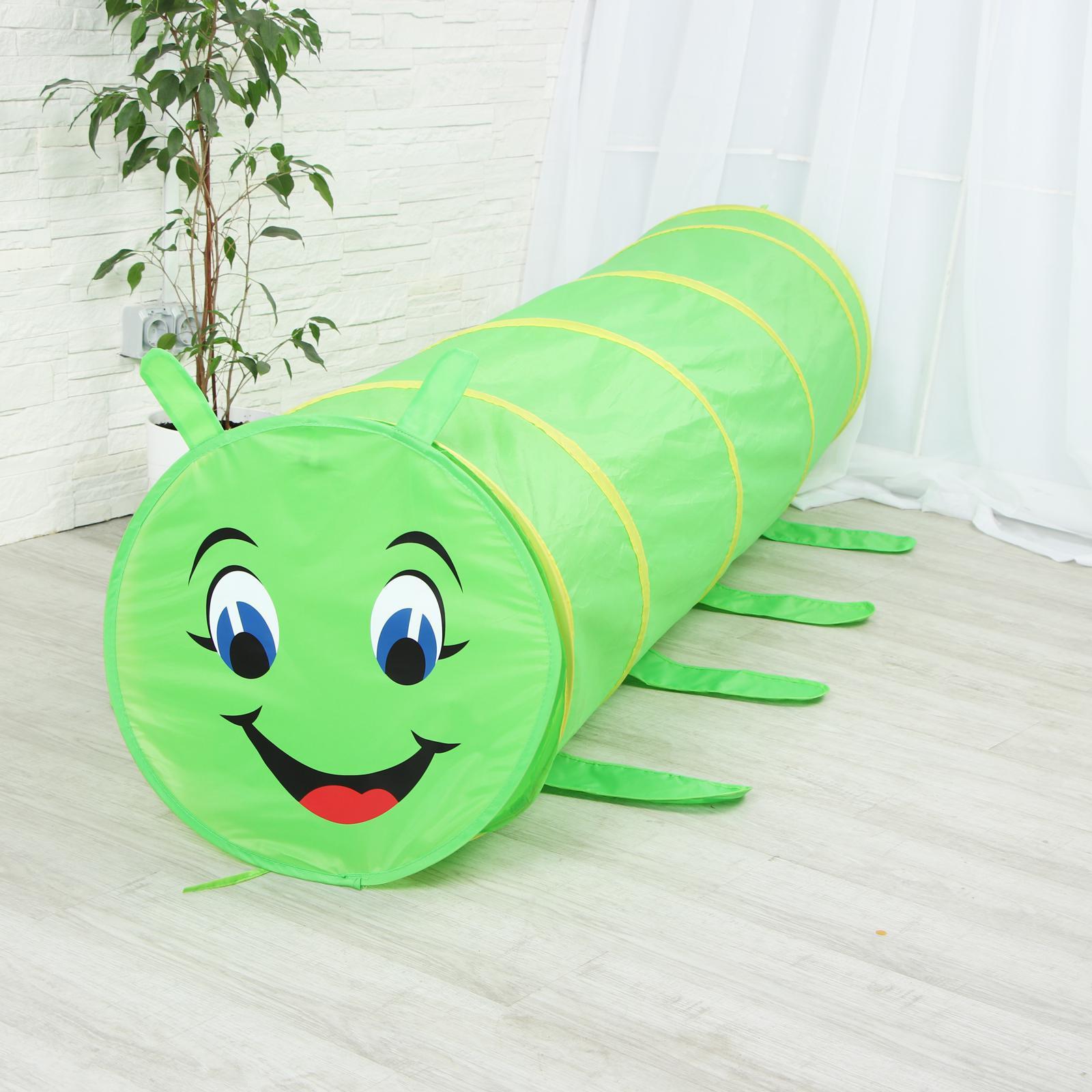 Конструкция выполнена в виде складывающейся трубы, по которой малыш сможет ползать. Кроха придумает миллион историй и игр для туннеля, потренирует фантазию и воображение. Ползая по нему, ребёнок развивает координацию движений и учится ориентироваться в пространстве.