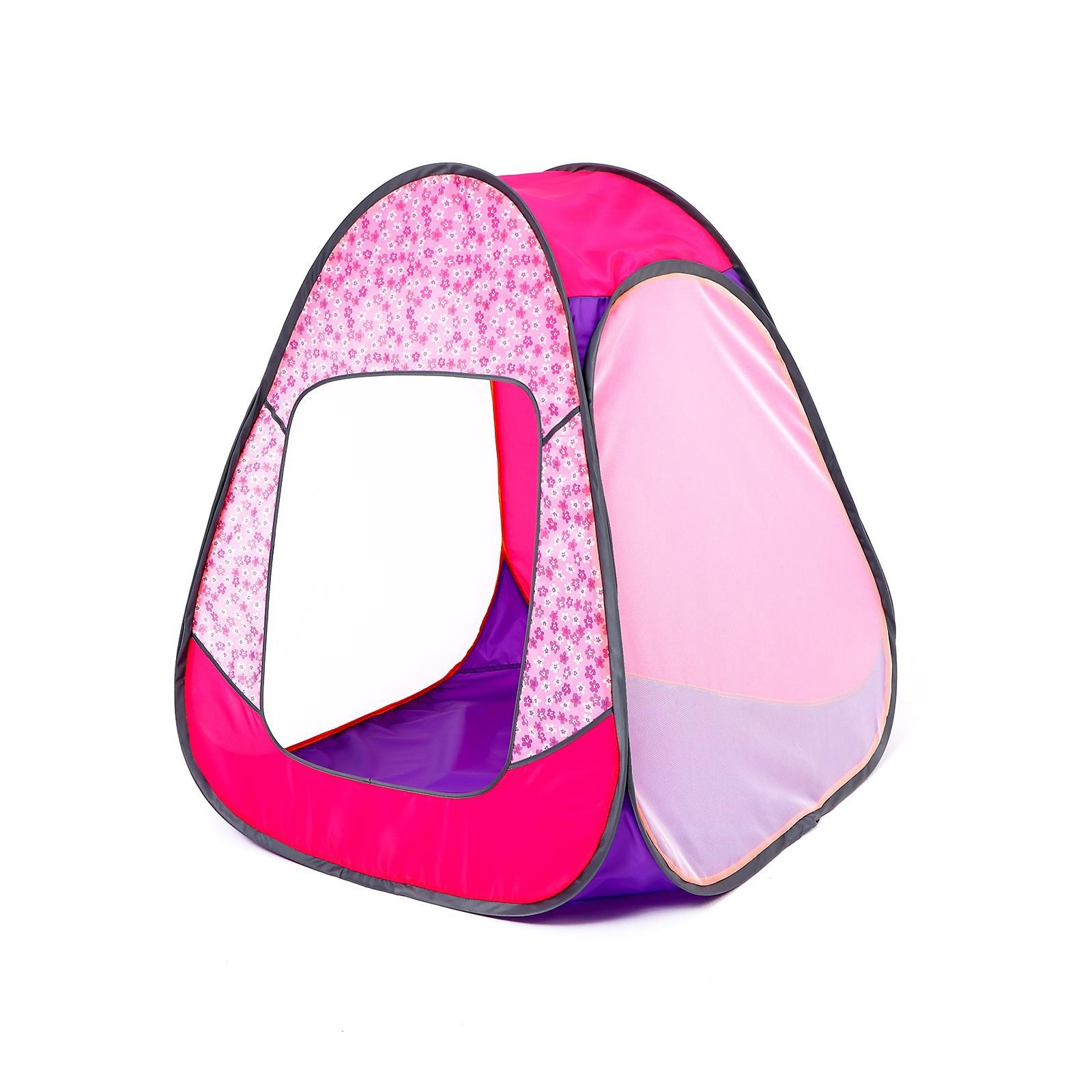 Палатка детская «Радужный домик» 4 грани конус-мини, Цветы на розовом