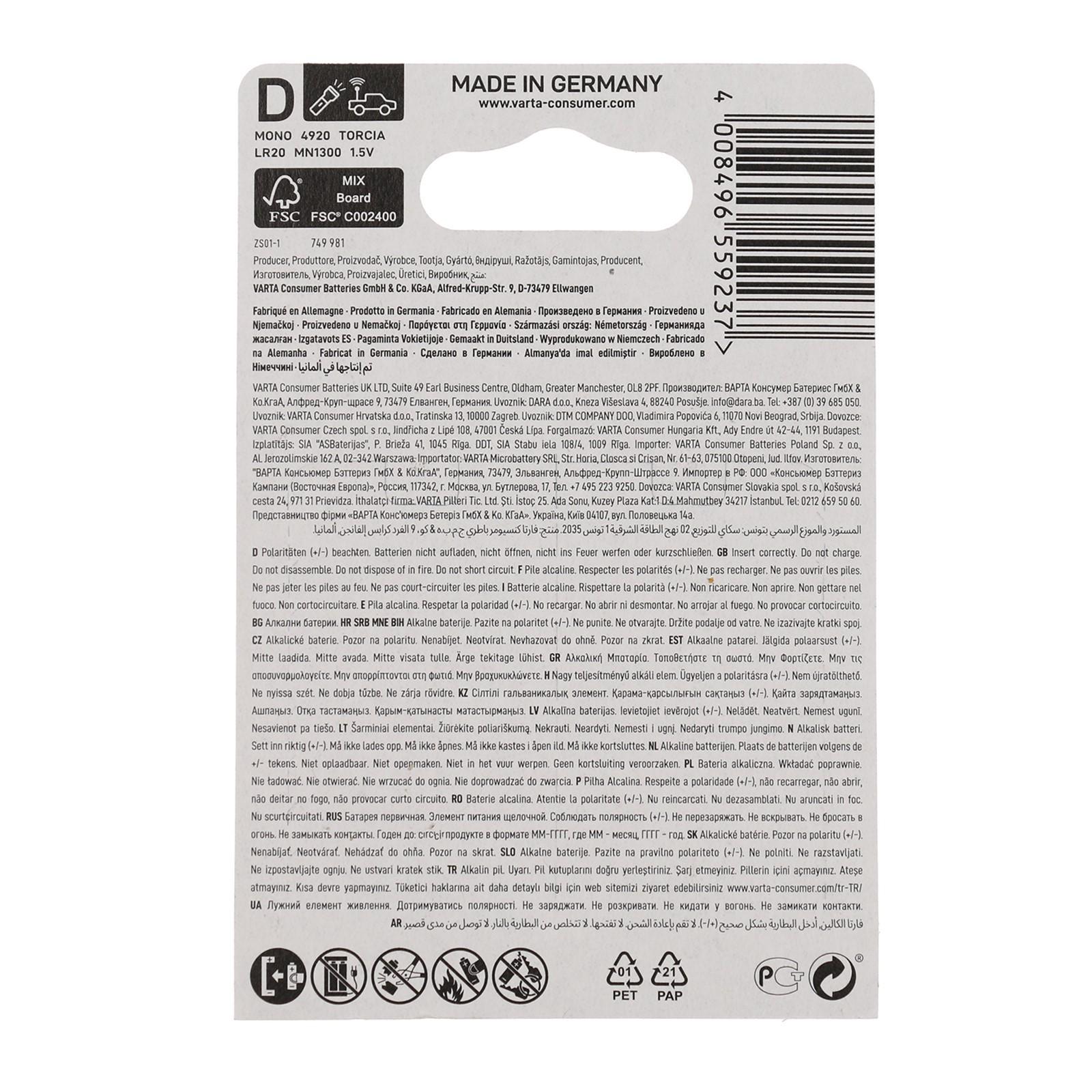 Батарейка алкалиновая Varta HIGH ENERGY D набор 2 шт