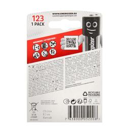 Батарейка литиевая Energizer, 123-1BL, для фото, 3В, блистер, 1шт.