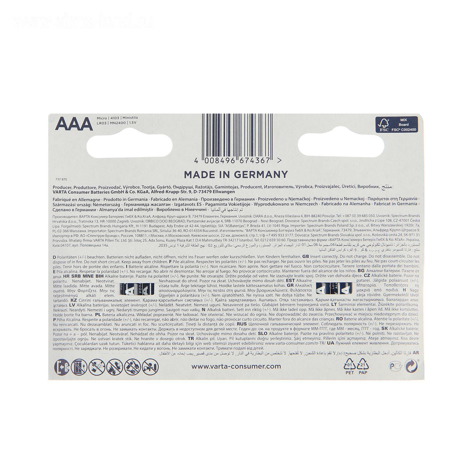 Батарейка алкалиновая Varta Energy, AAA, LR03-10BL, 1.5В, блистер, 10 шт.