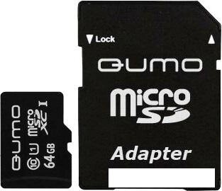 Карта памяти QUMO microsdxc UHS-1 64GB + адаптер (QM64gmicsdxc10U1)