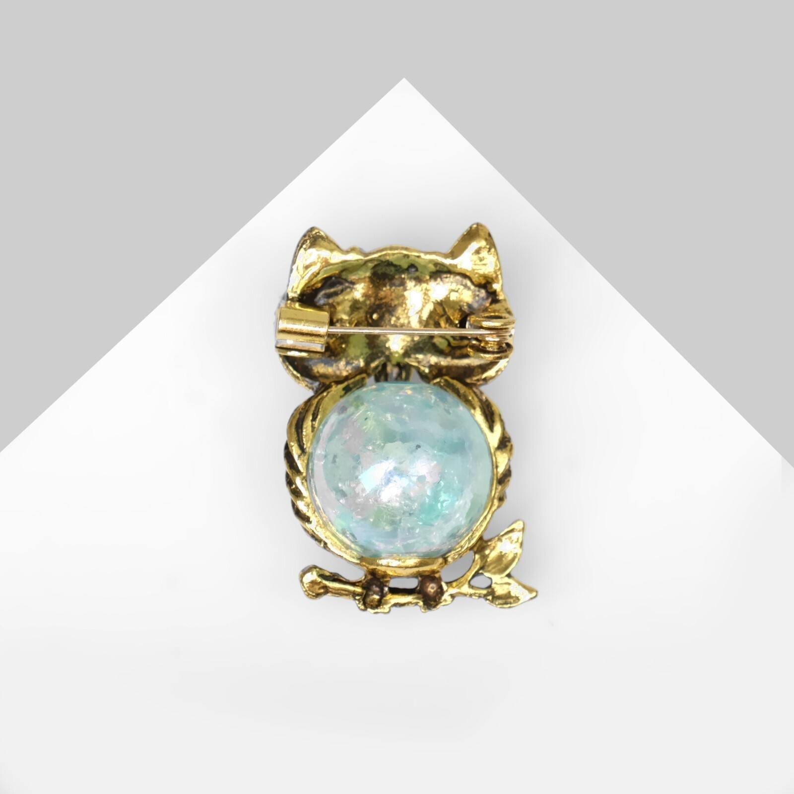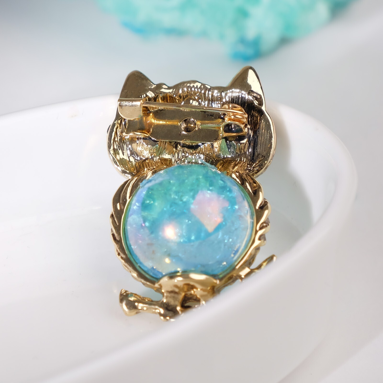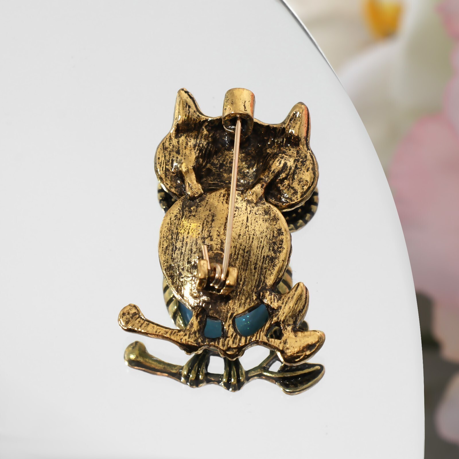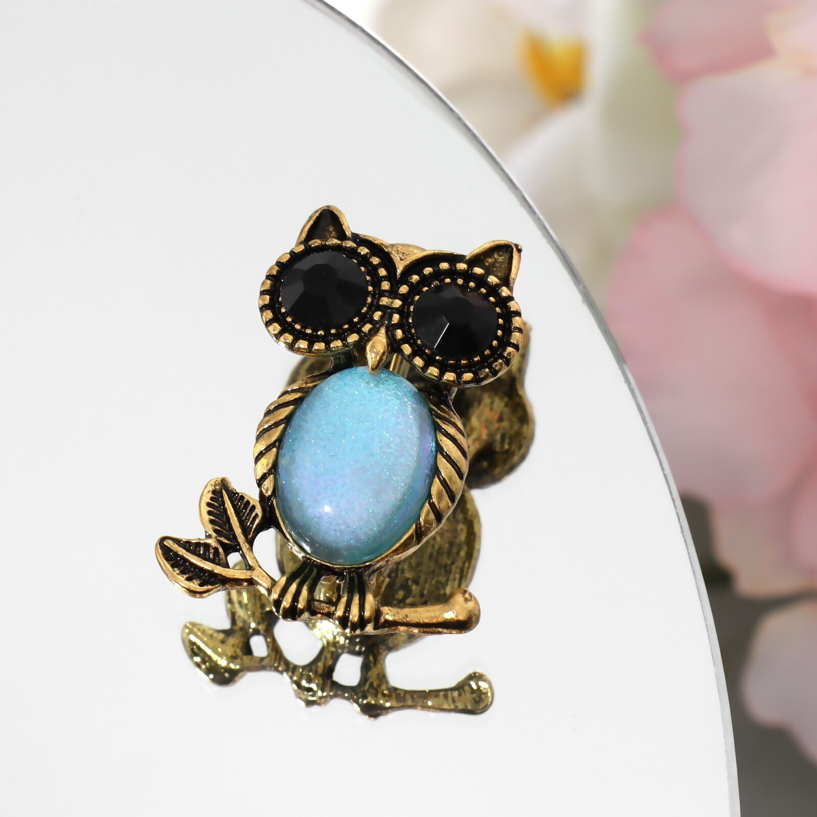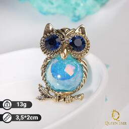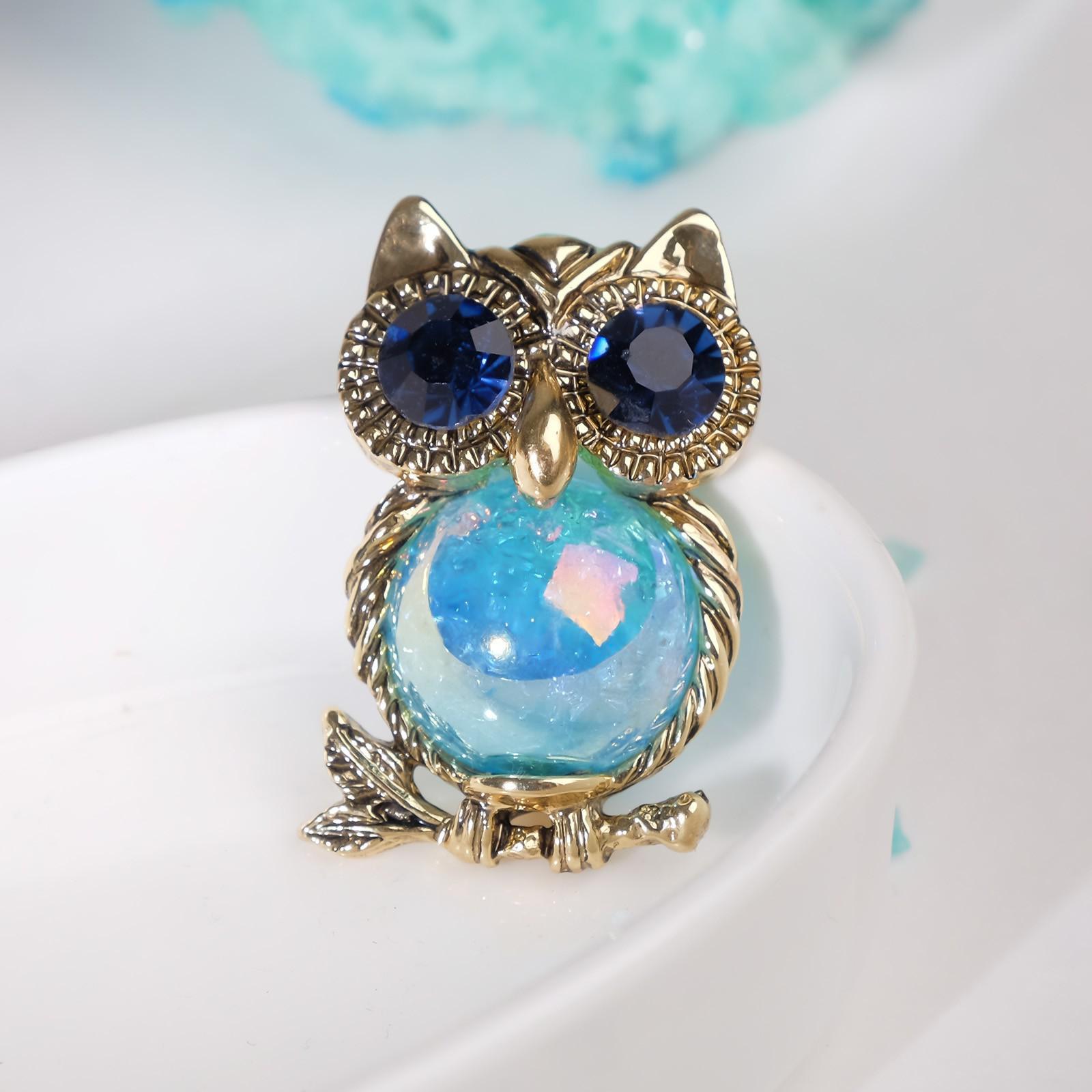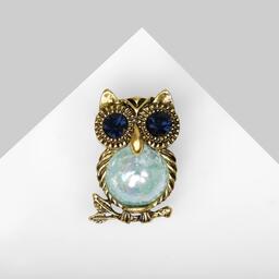 Брошь "Сова" шарик, цвет сине-голубой в чернёном золоте