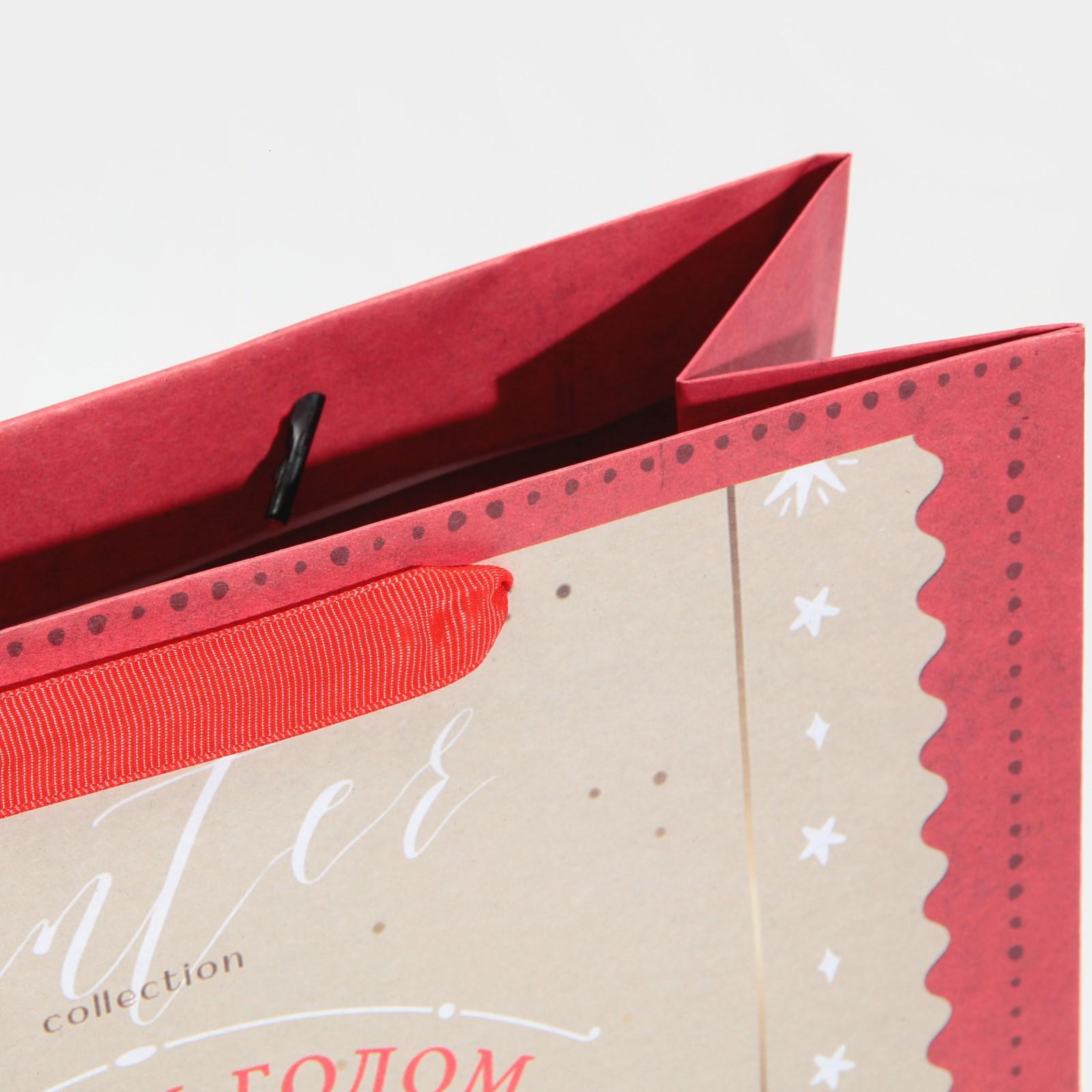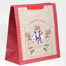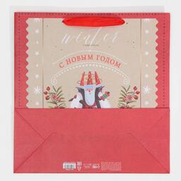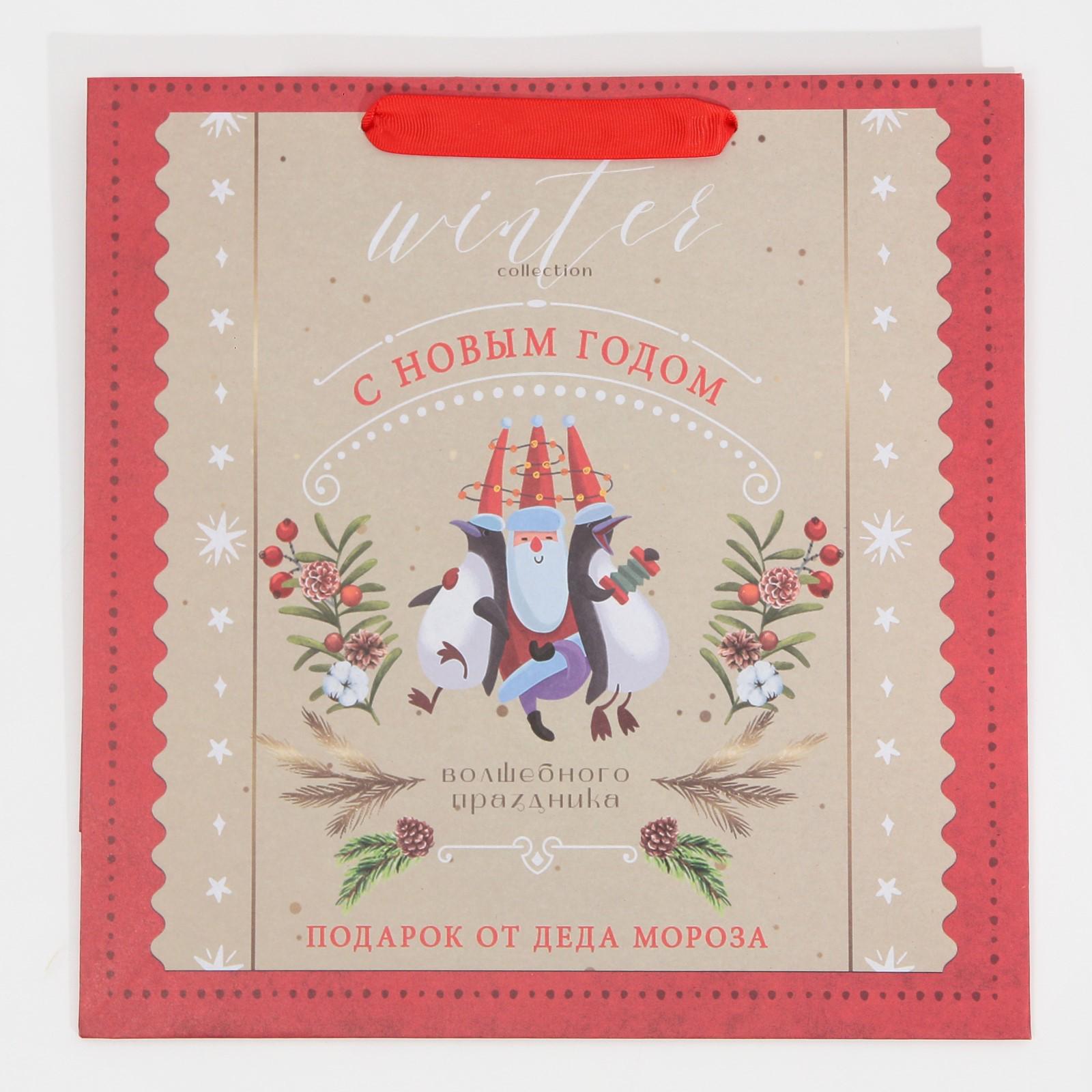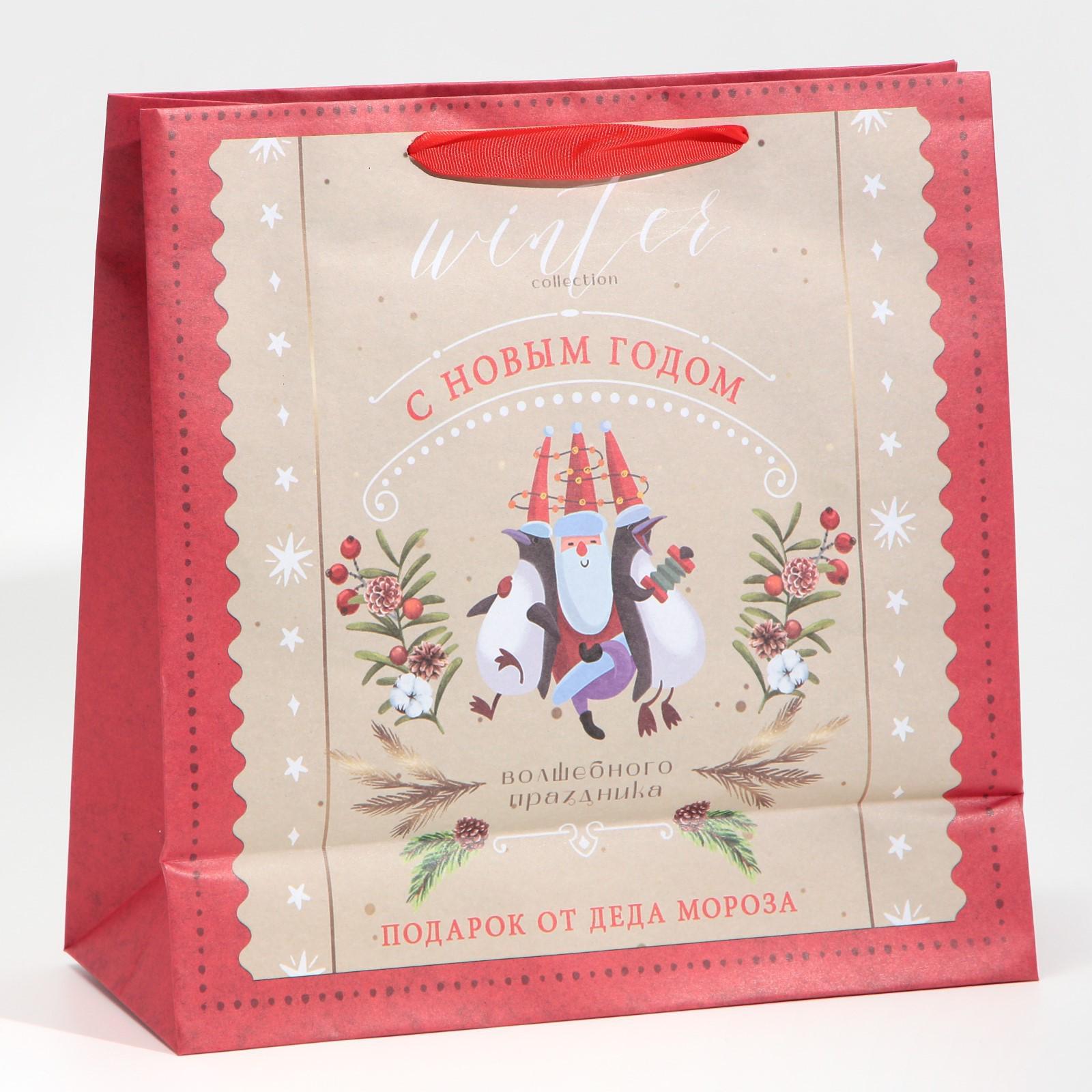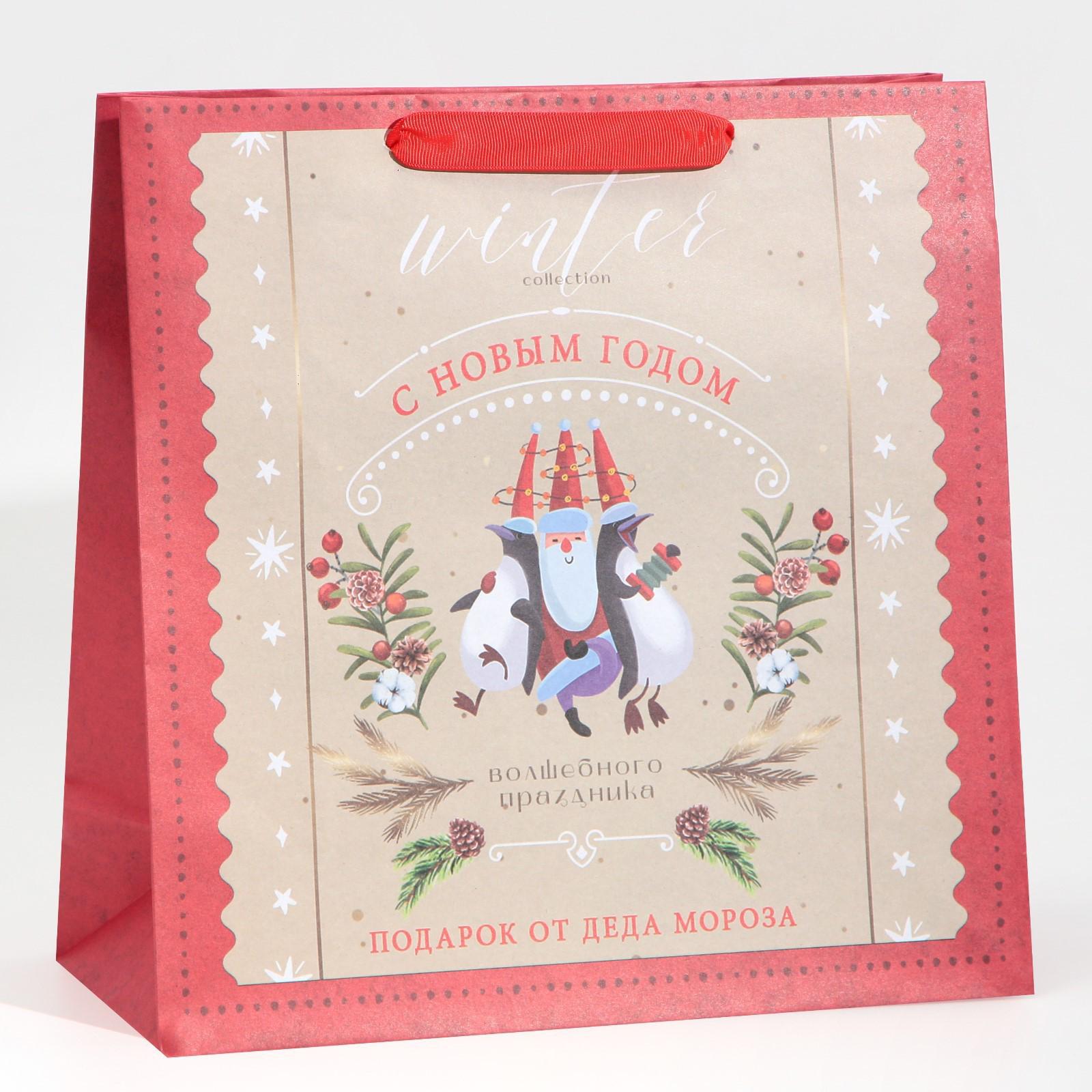 Пакет крафтовый квадратный «Зима», 30 × 30 × 12 см