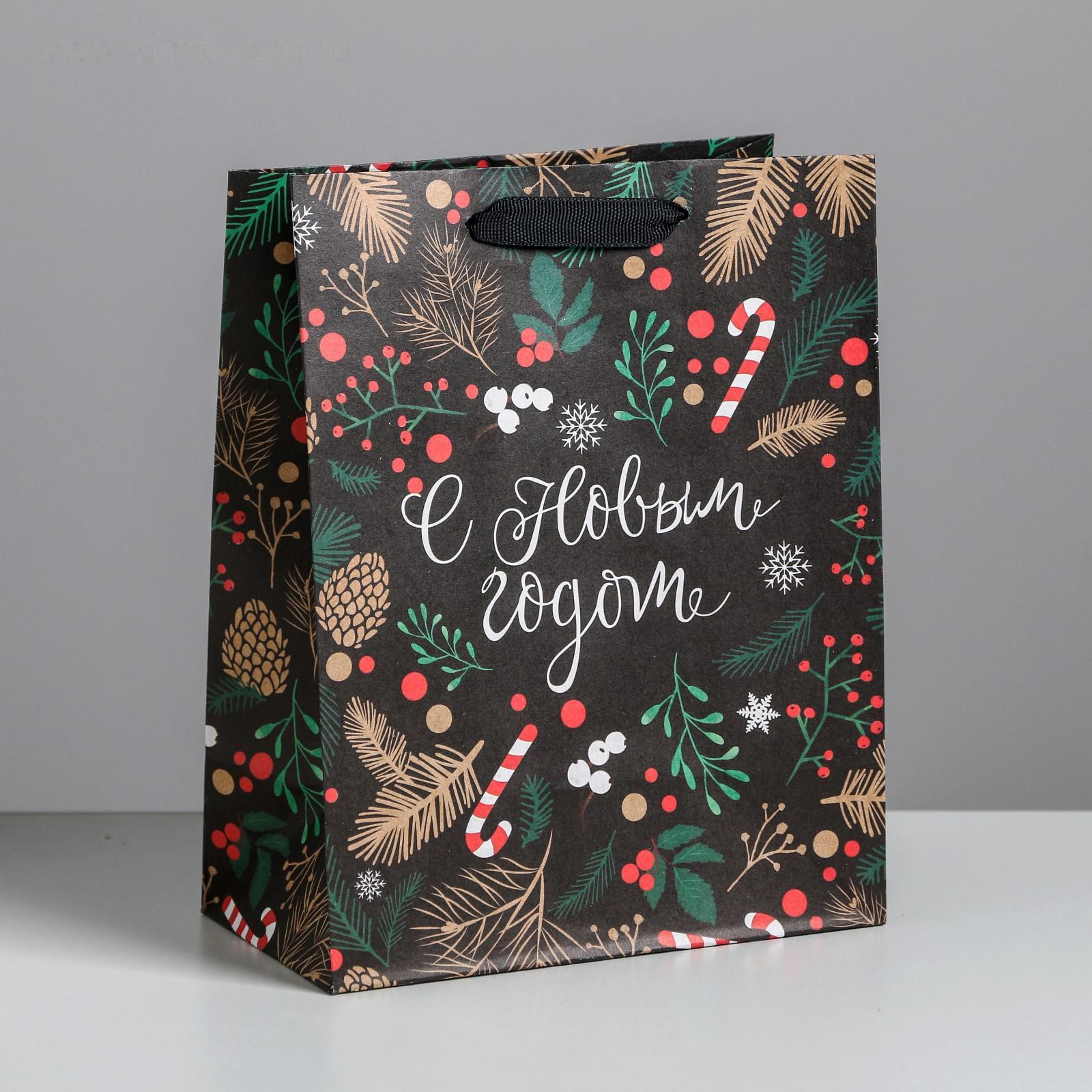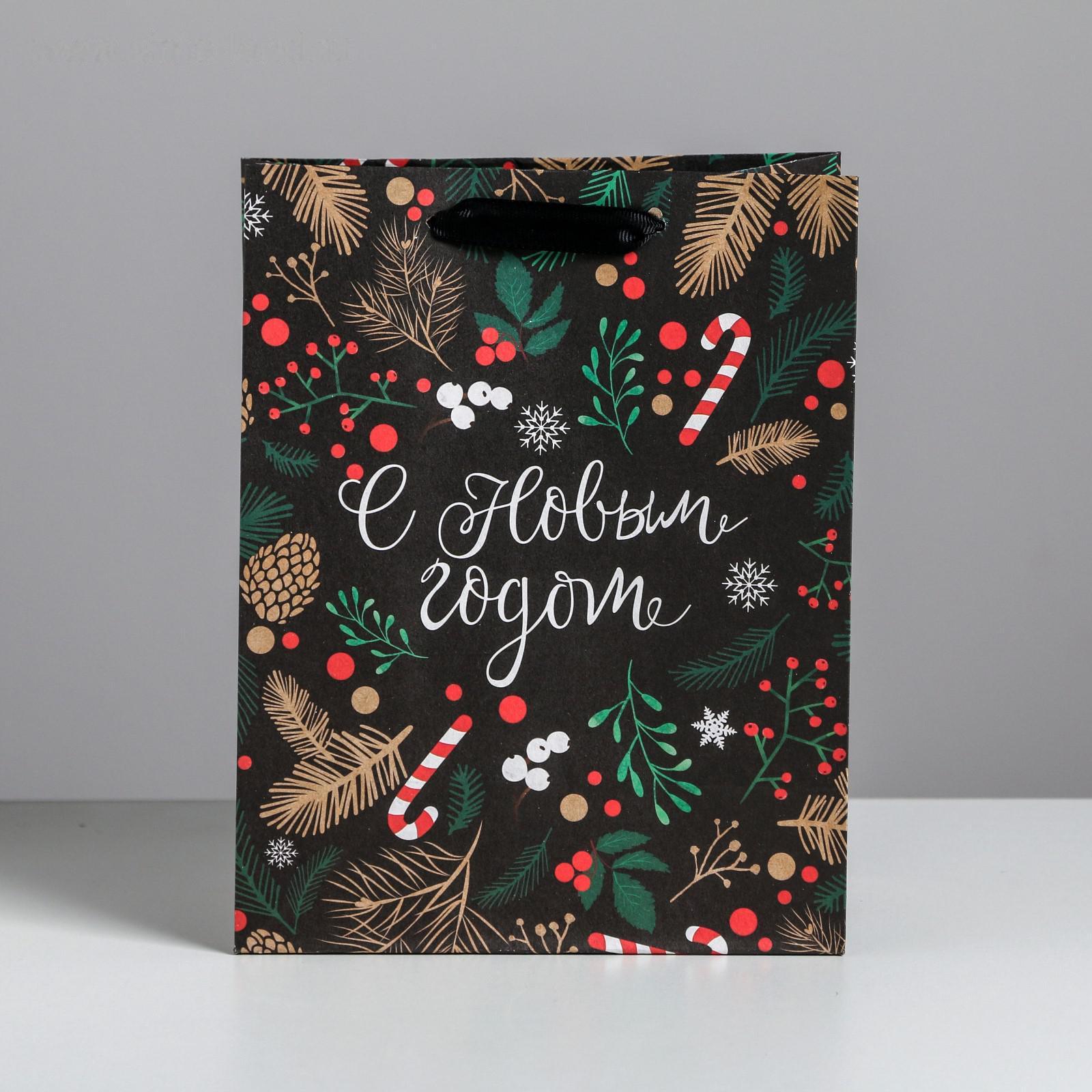 Пакет крафтовый вертикальный «Еловый лес», MS 18 × 23 × 10 см