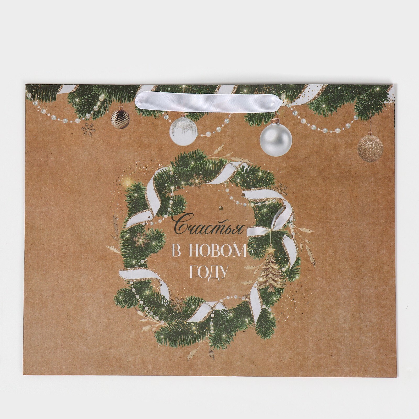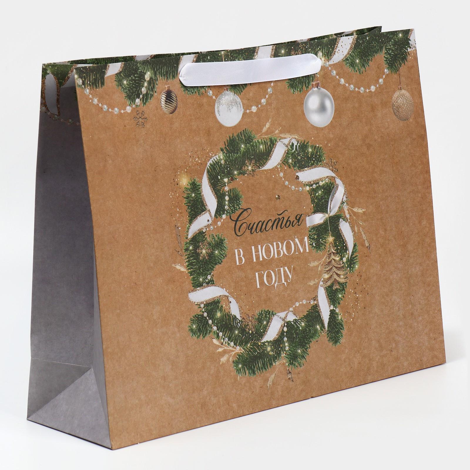 Пакет крафтовый горизонтальный «Счастье рядом», L 40 × 31 × 11.5 см