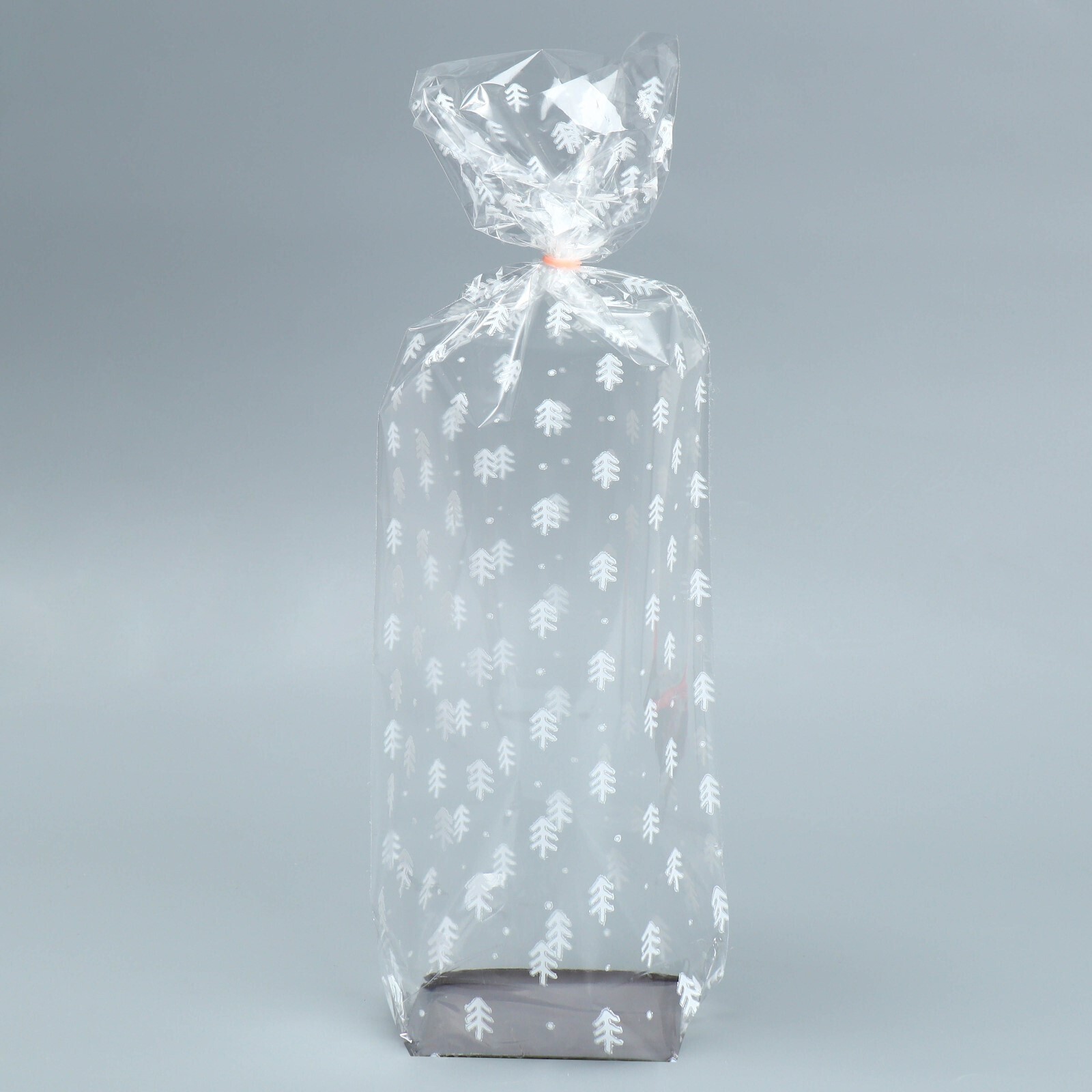 Пакет подарочный с жёстким дном «Ёлочки», 6 х 8 х 30 см