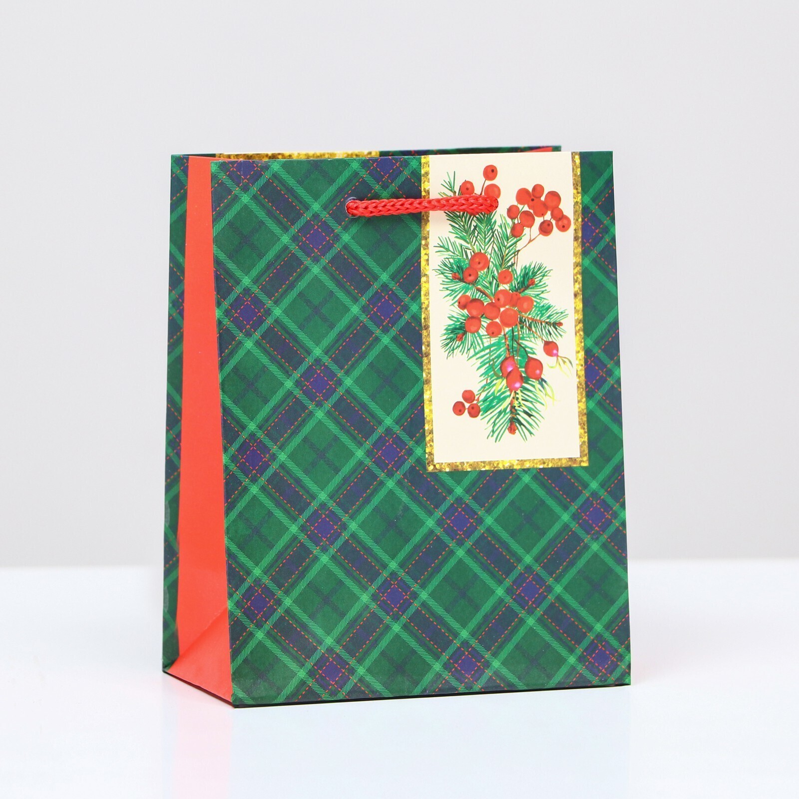 Пакет подарочный "В клетку", 11,5 х 14,5 х 6,5 см
