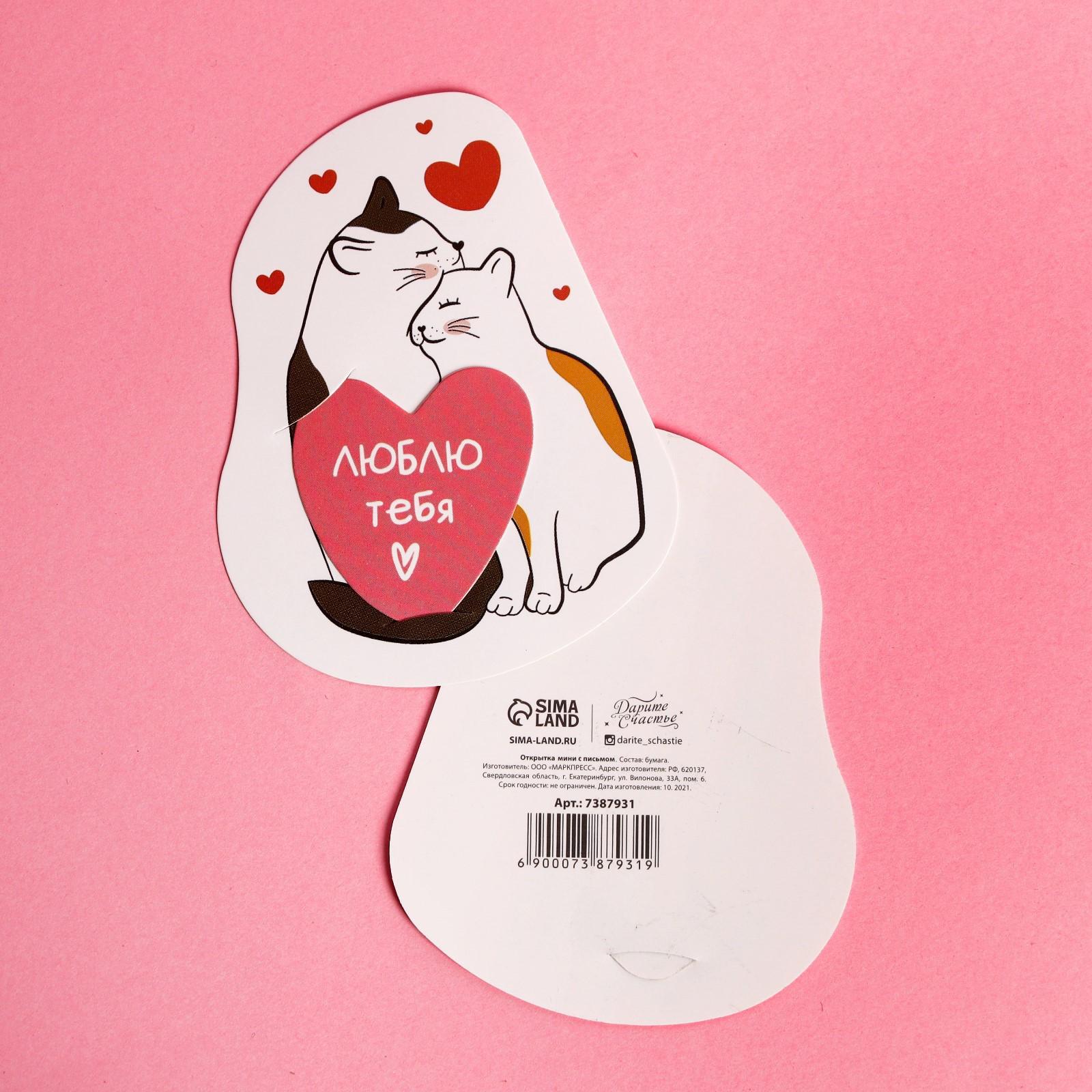 Открытка-мини с письмом «Любовь», коты, 7,8 × 10 см