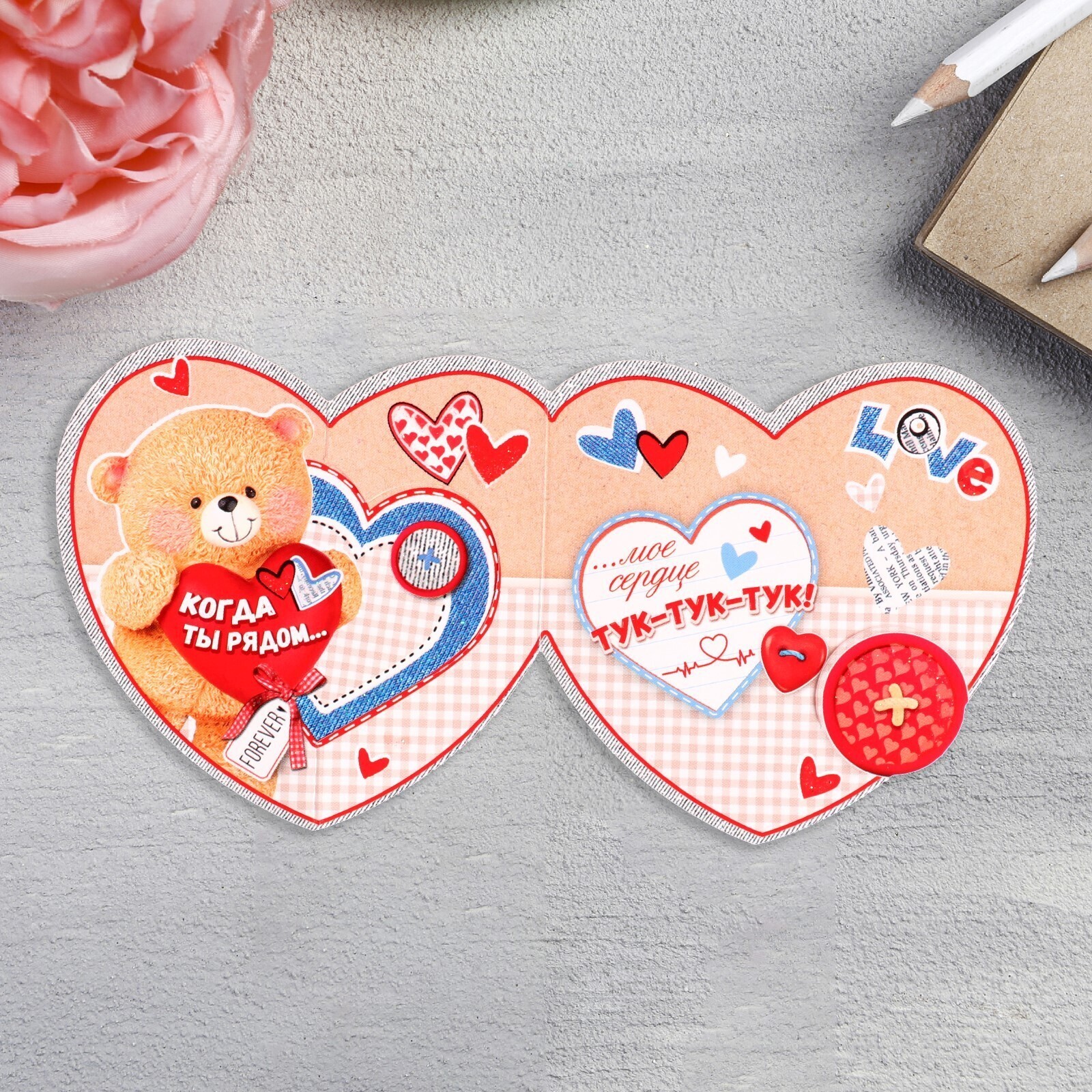 Валентинка "Когда ты рядом..." глиттер, 8,3х8,6 см