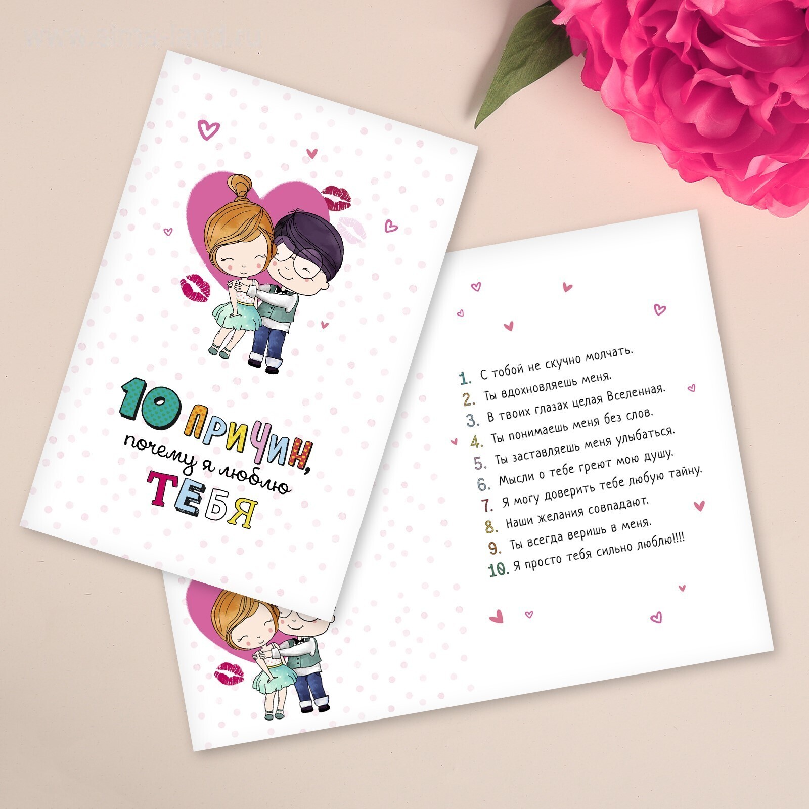 Открытка «10 причин, почему я люблю тебя», фактурная бумага ВХИ, 12 × 18 см