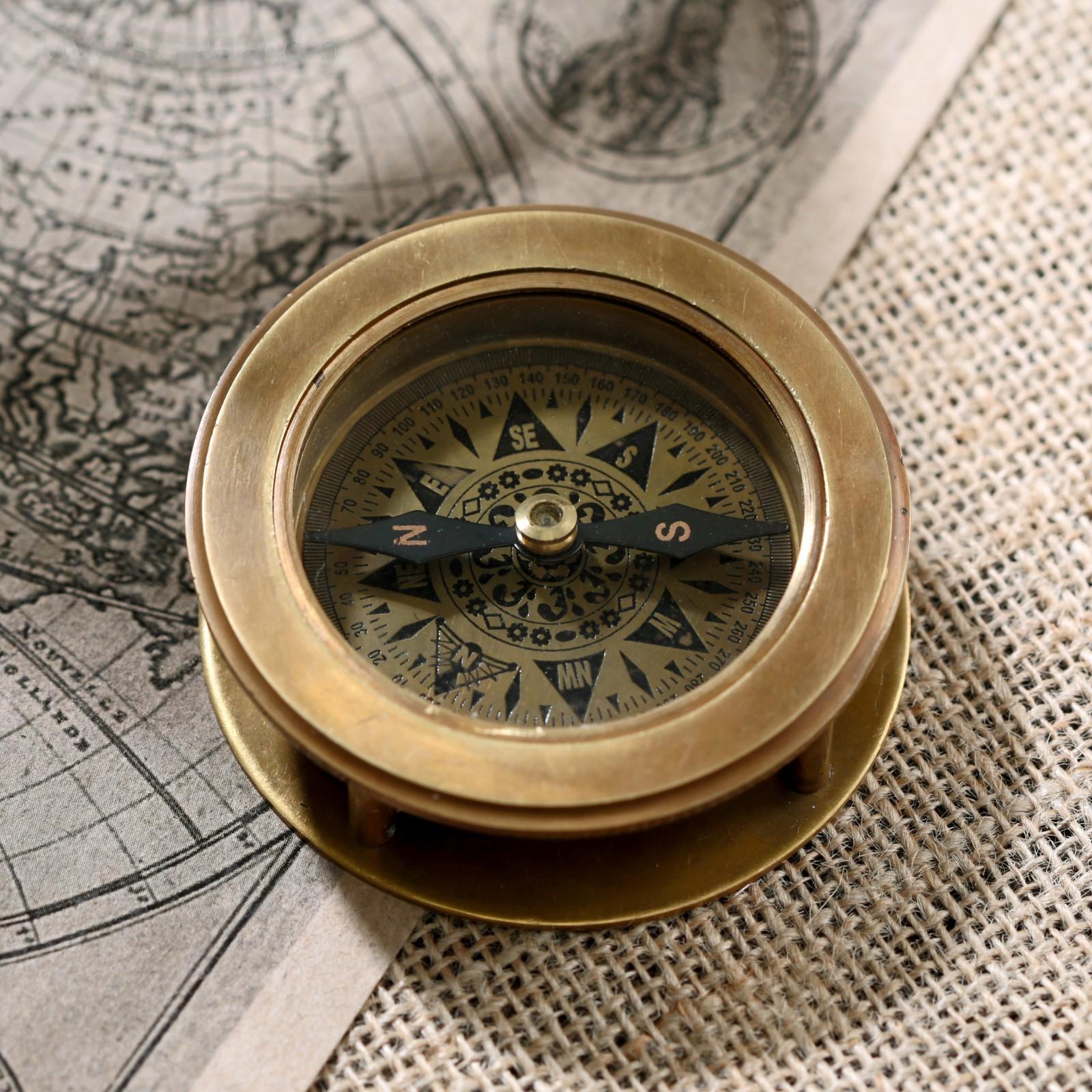 Компас "Компас и лупа" латунь 7х7х2,5 см