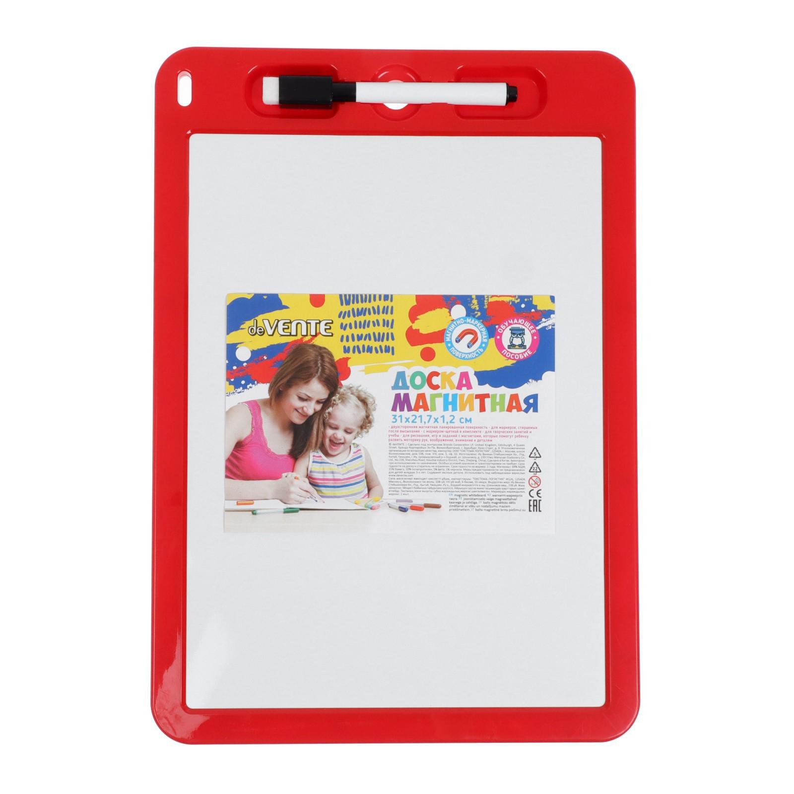 Доска маркерная A4 (29 х 22 см) deVENTE, двусторонняя: без рисунка/клетка, с маркером, красная