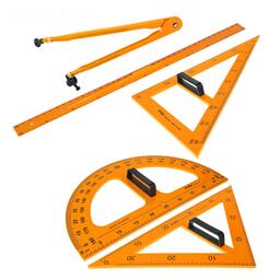 Набор для школьной доски, 5 предметов: 2 треугольника, 1 транспортир, 1 циркуль, 1 линейка