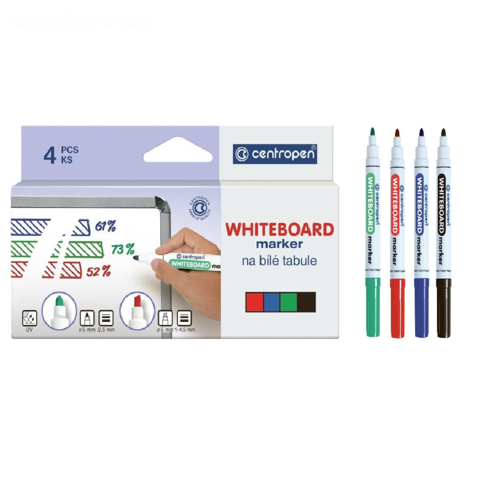 Набор маркеров для доски 4 цвета 5.0 мм Centropen 8559, линия 2,5 мм, круглые, картонная упаковка, европодвес