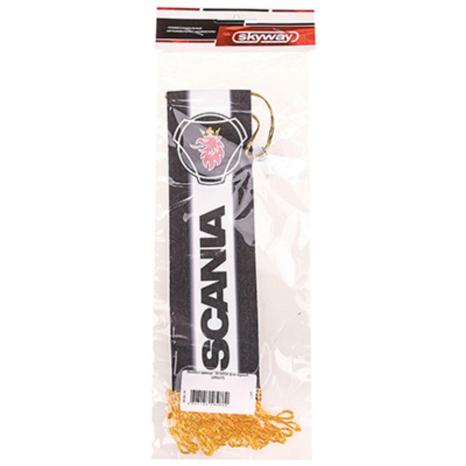 Вымпел прямоугольный SCANIA фон черный (200х55) цветной (1шт) SKYWAY- Сувенирный вымпел предназначен для салона автомобиля (грузовой, легковой). Крепится на зеркало заднего вида или на любую поверхность с помощью присоски, создает приятную атмосферу в автомобиле. Выполнен вымпел из прочной ткани с бахромой и дизайном в виде нанесения марки автомобиля. Такой аксессуар порадует автовладельцев.