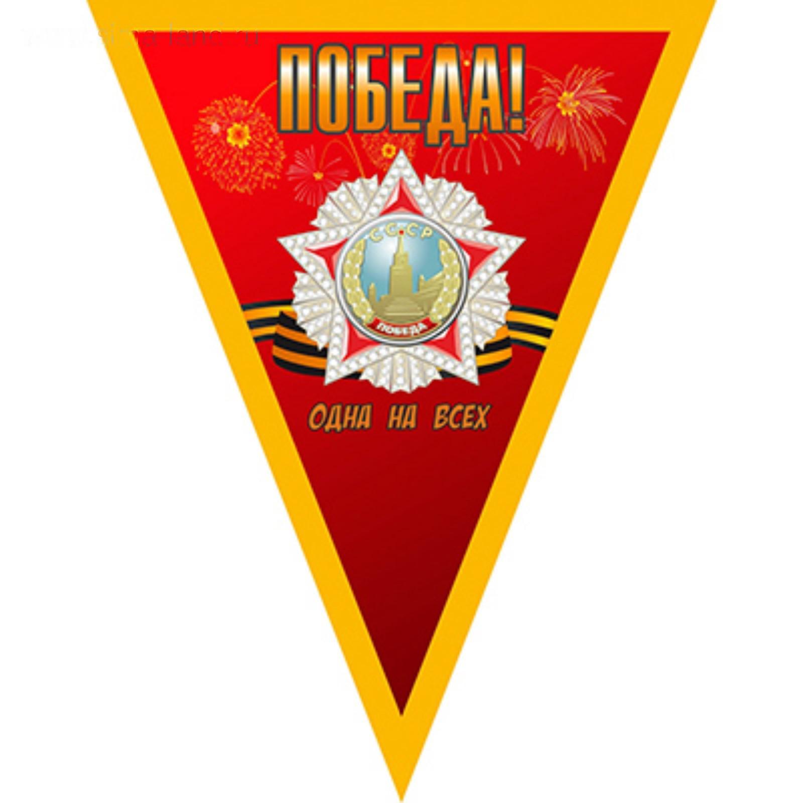 Вымпел треугольный с бахромой к 9 мая «Мы помним мы гордимся» звезда, 200х250 мм, георгиевская лента, цветной S05102008