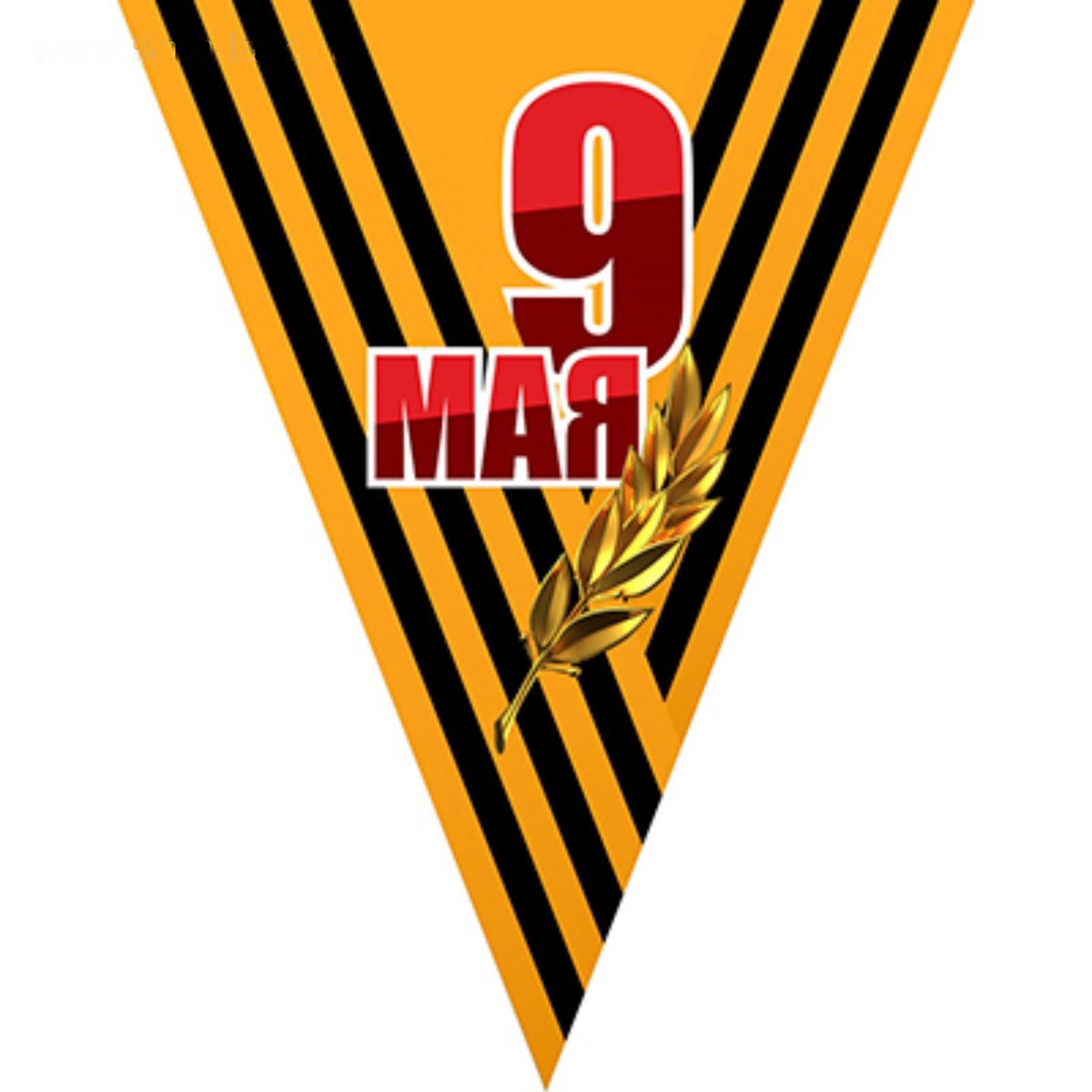 Вымпел треугольный с бахромой к 9 мая Георгиевская лента-ветвь, 200х250 мм, цветной, Skyway S05102001