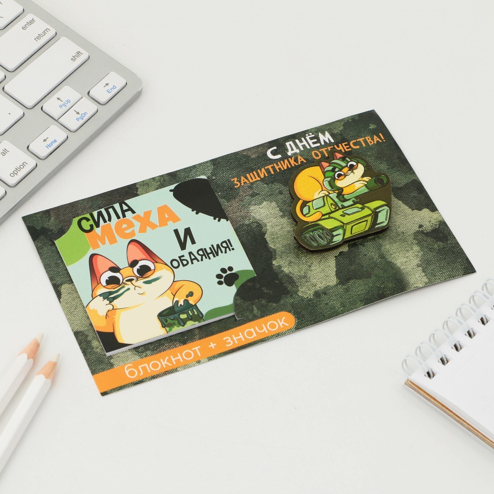 Подарочный набор: блокнот и значок "С днём защитника Отечества"