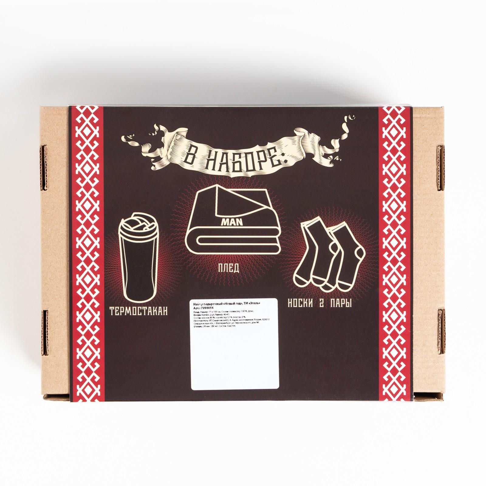 Плед 75х100 см Носки мужские (2 пары) размер 41‒44 (27‒29 см) Термостакан на 380 мл