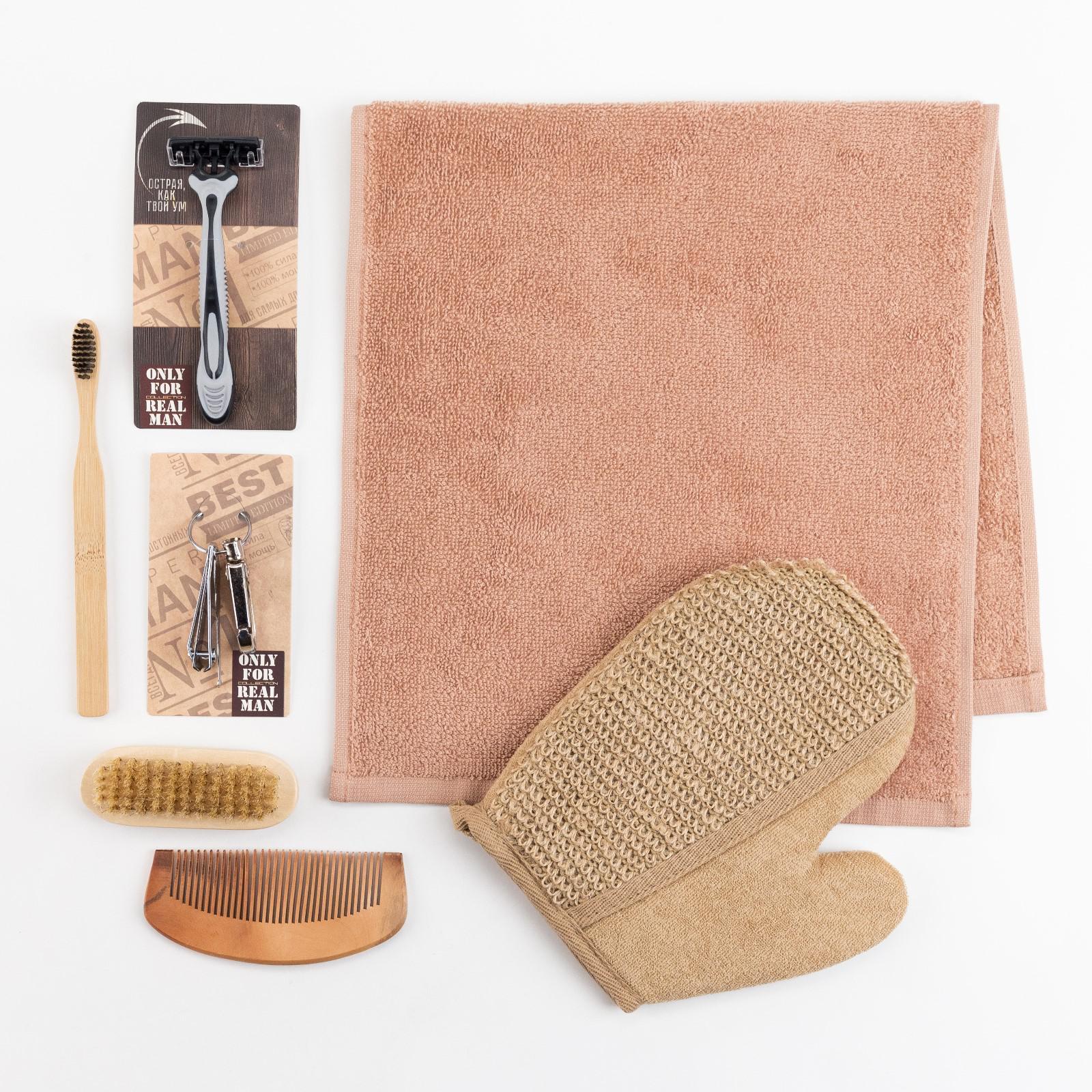 • Составляющие набора Бритвенный станок, Зубная щётка, Мочалка, Полотенце, Принадлежности для маникюра, Расчёска, Щётка
