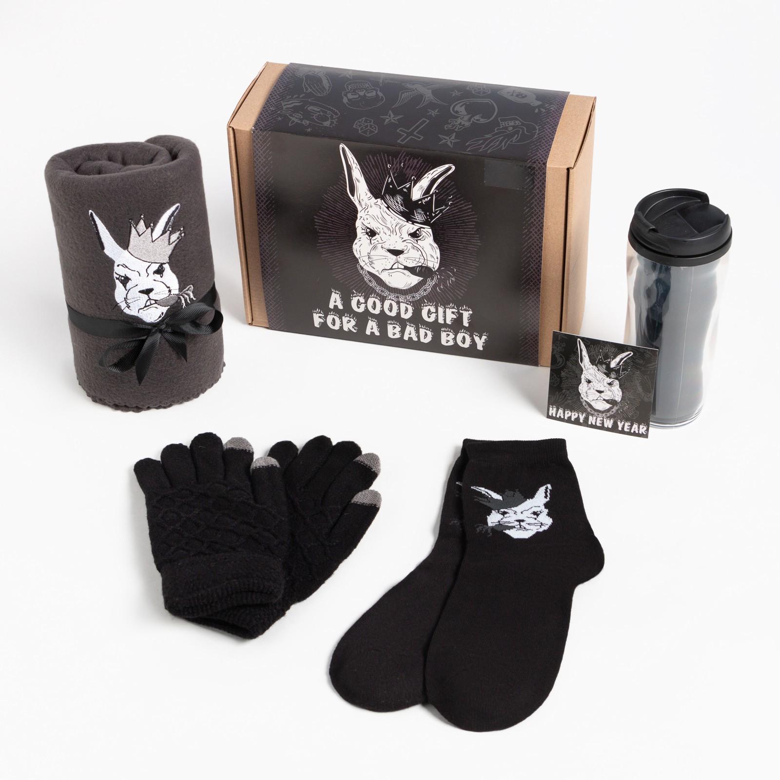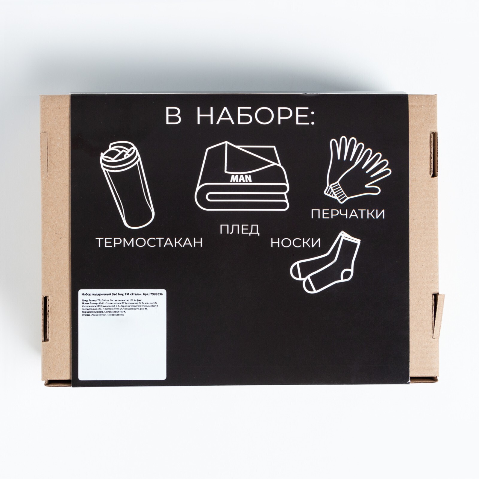 Набор подарочный "Bad boy" плед, носки, перчатки, термостакан