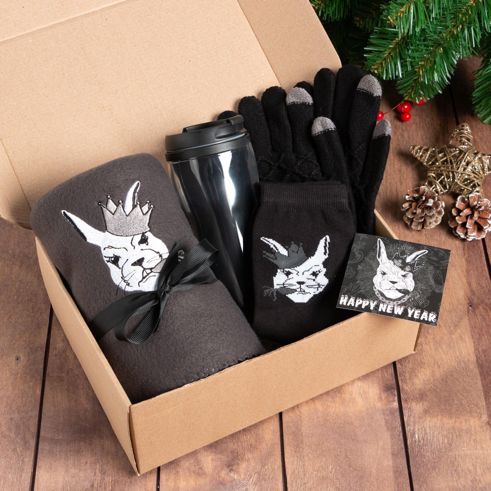 • Составляющие набора Носки, Открытка, Перчатки, Плед, Термостакан