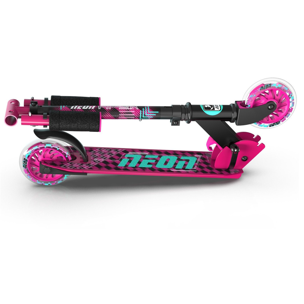 Neon Apex – це стильний та легкий самокат. Регульоване кермо Super Grip і заднє гальмо роблять це самокат одним з наших найуніверсальніших самокатів для повсякденного використання. Просто покладіть кермо і приберіть його на зберігання наступного дня! LED підсвічування коліс покращує безпеку в умовах низького освітлення, що робить цей самокат ідеальним варіантом пересування.