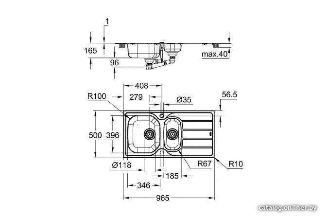 - Размеры дополнительных чаш 180 x 340 x 130 мм