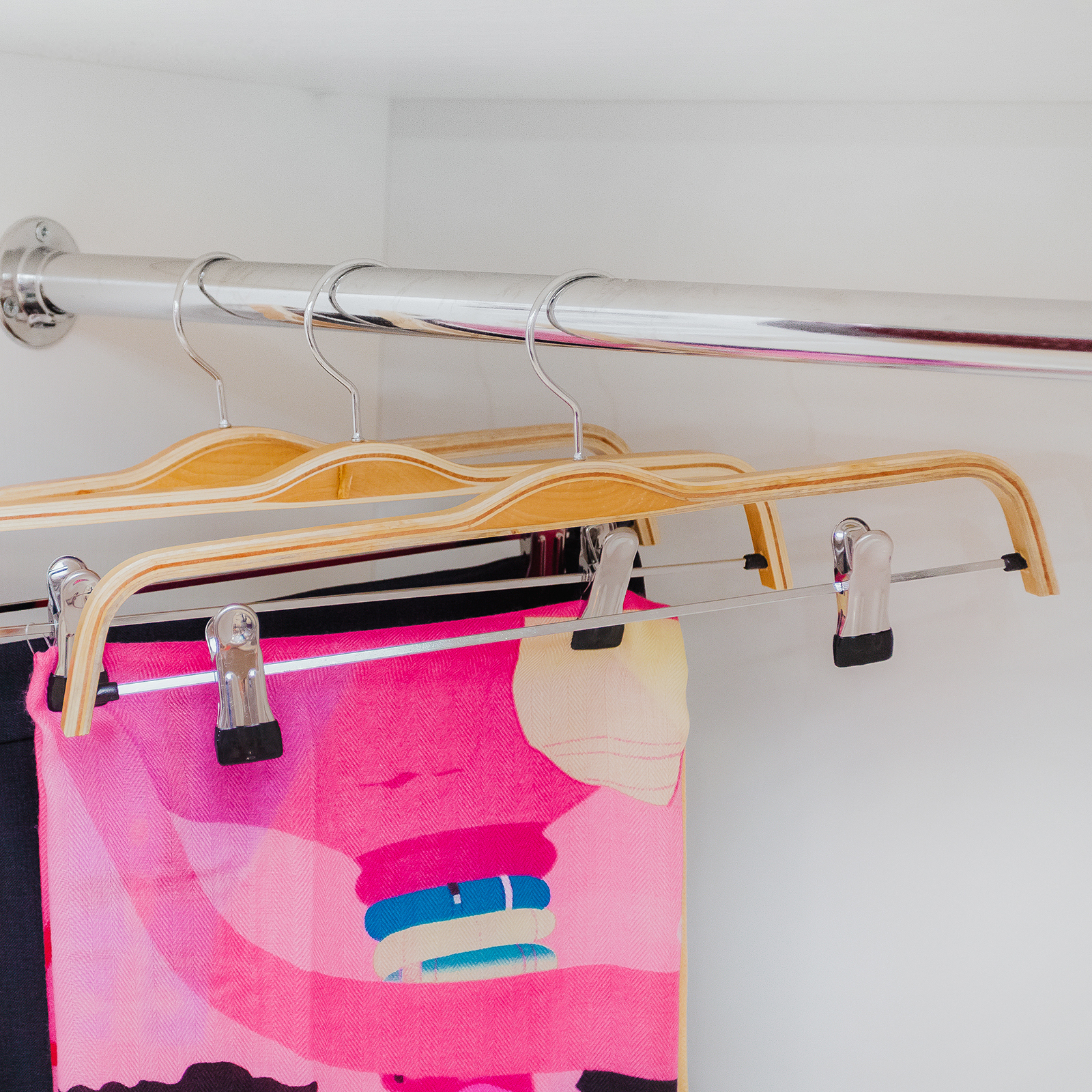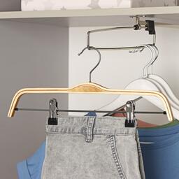 Вешалка – это компактное приспособление, которое позволит вам разместить в гардеробе классические штаны из лёгких или плотных материалов, блузки, рубашки, кофты и другие вещи. Изделие практичной формы занимает мало места, что позволяет экономить пространство в шкафу.