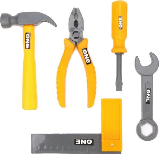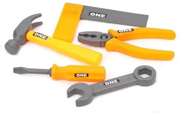 - Инструмент в наборе молоток, отвертка, ключ гаечный, угольник, пассатижи