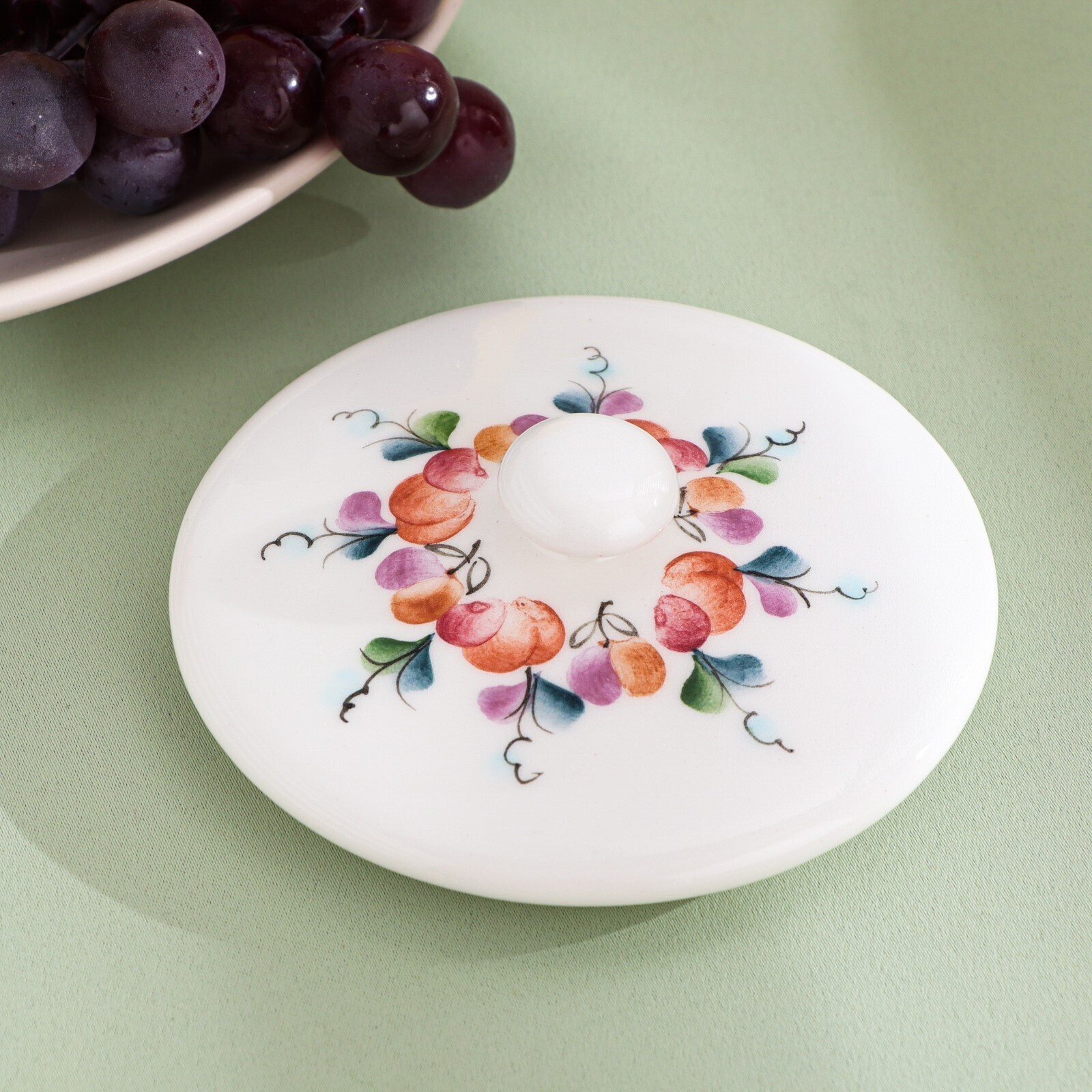 Тонкий слой стеклянной глазури защищает ручную роспись, поэтому после длительного использования изделие не утратит блеск и насыщенность рисунка.