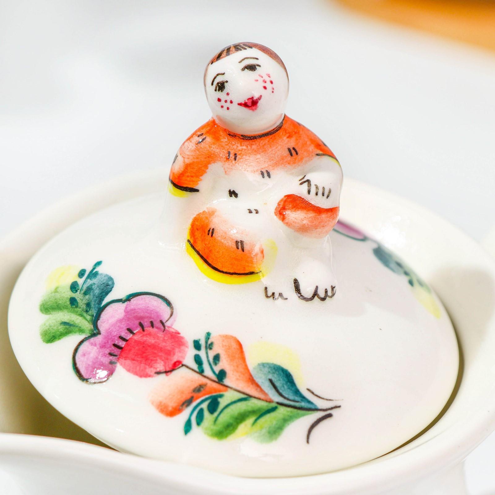 Посуда изготавливается из глины, расписывается красками, обжигается в печи и покрывается глазурью, что делает её долговечной, жаро- и водостойкой.