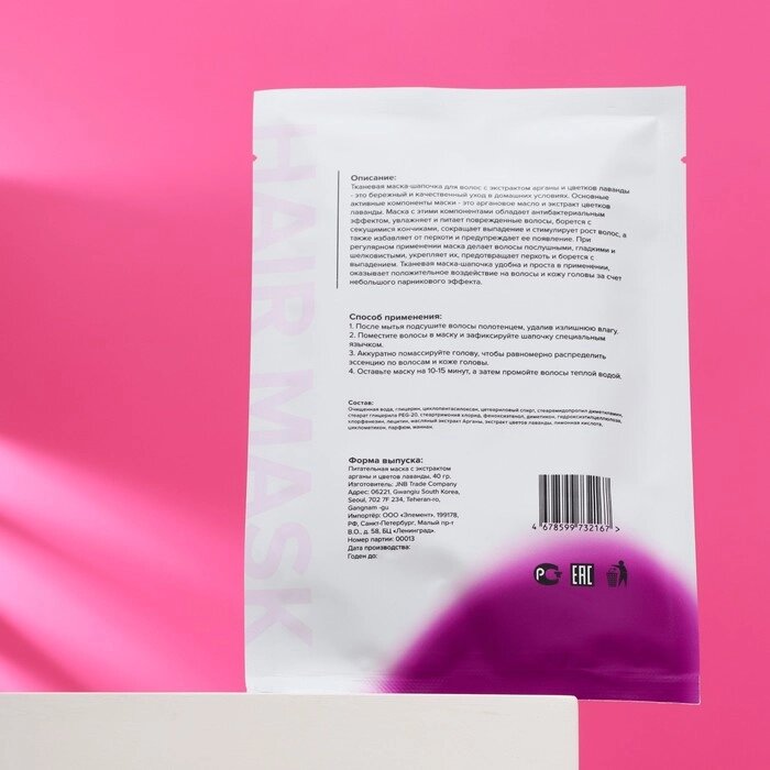 Маска-шапочка с экстрактом арганы и цветов лаванды, 40 г