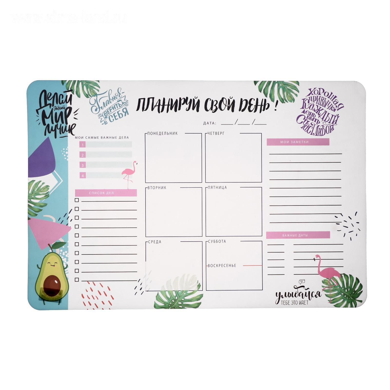 Накладка на стол пластиковая, А2, Обучающая, 640 х 430 мм, 400 мкм, НПД-3, "Планируй свой день"
