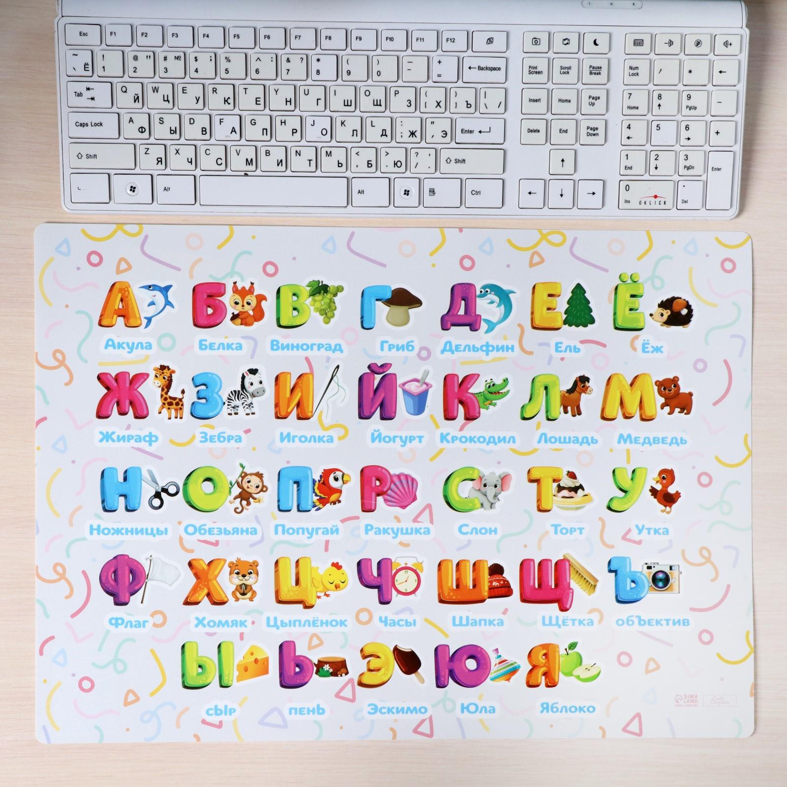 Накладка на стол пластиковая А3 (460 х 330 мм), Calligrata "Алфавит", 430 мкм, обучающая