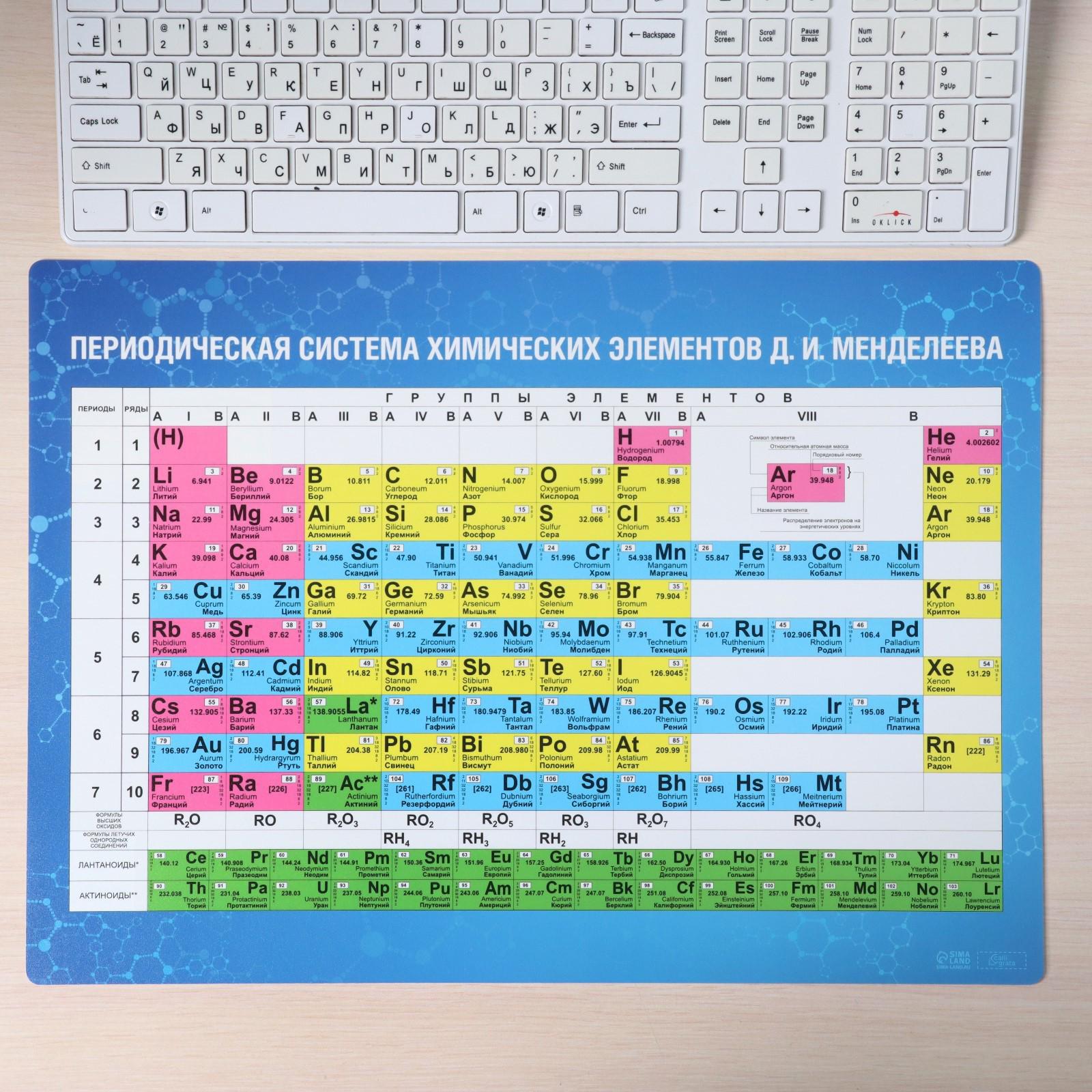 Накладка на стол пластиковая А3 (460 х 330 мм), Calligrata "Таблица Менделеева", 430 мкм, обучающая