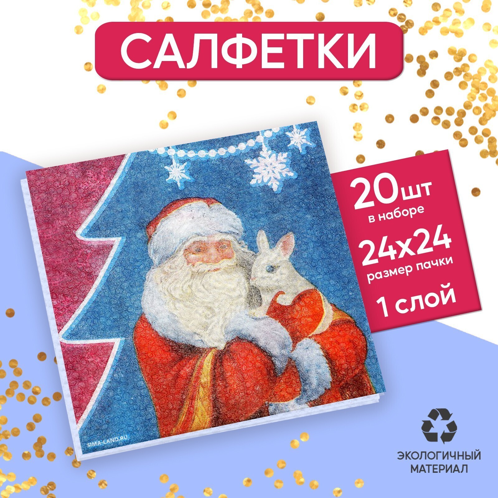 Салфетки бумажные однослойные «Дед Мороз», 24×24 см, набор 20 штук