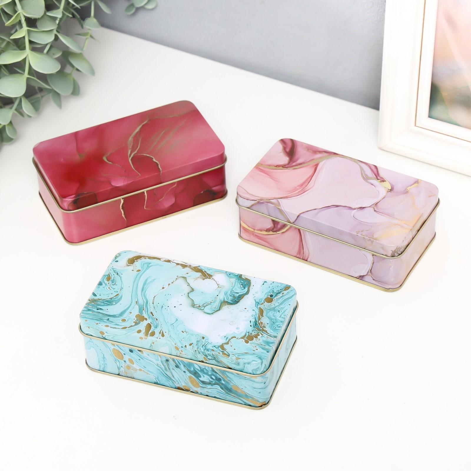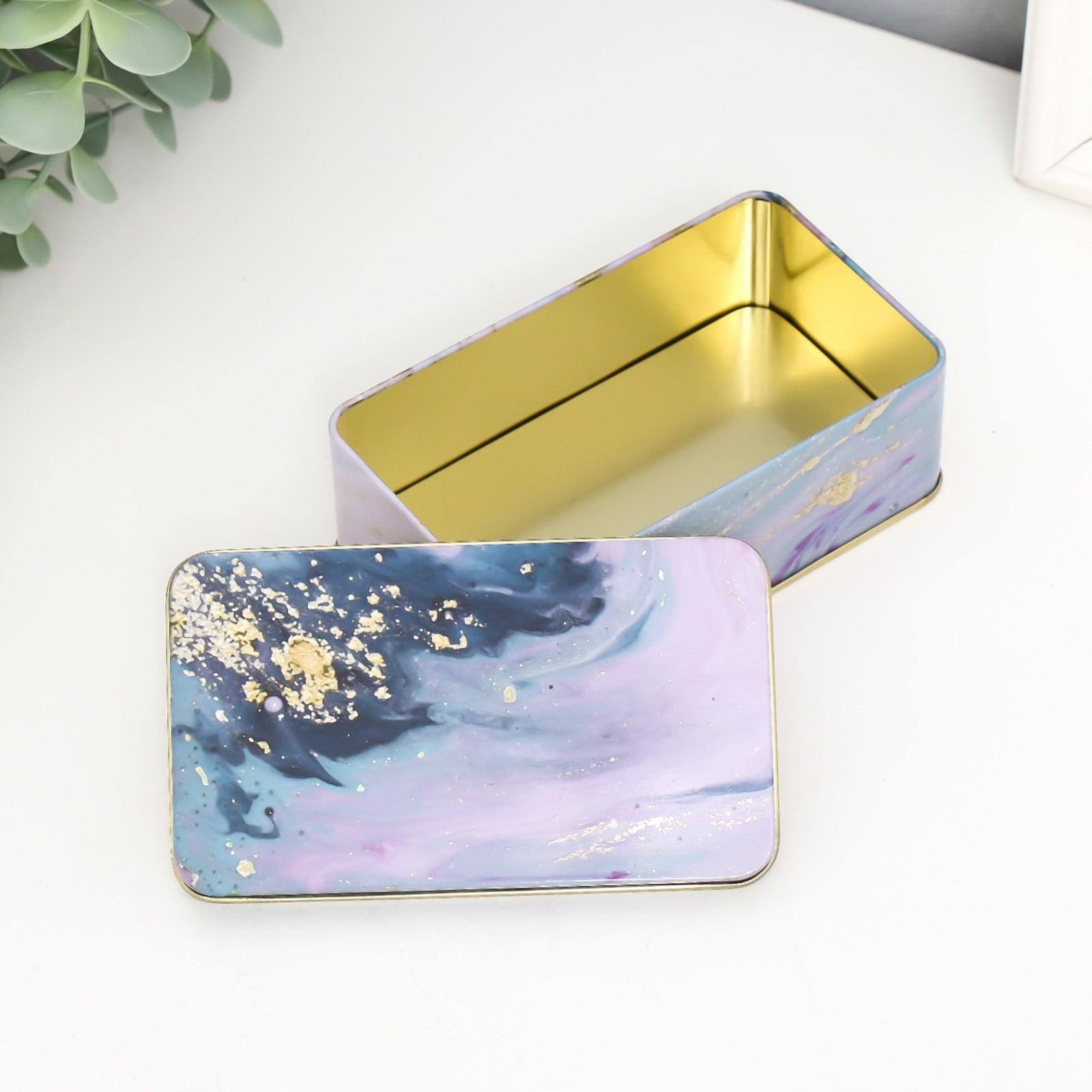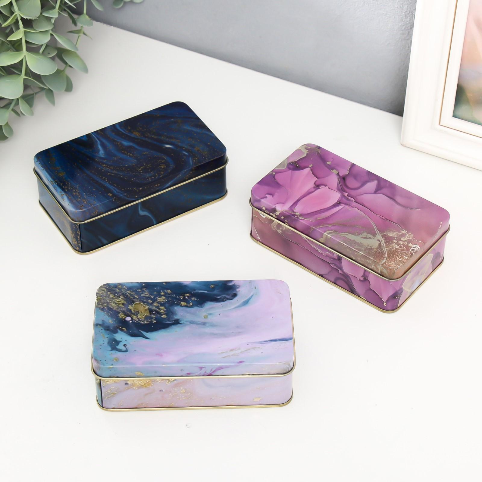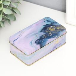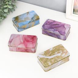 Шкатулка металл прямоугольная "Цветной мрамор с золотыми трещинками" МИКС 6,5х3,8х11,5 см