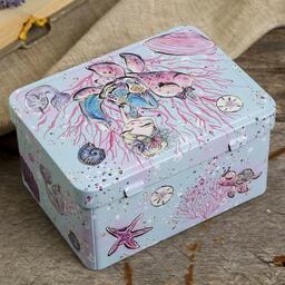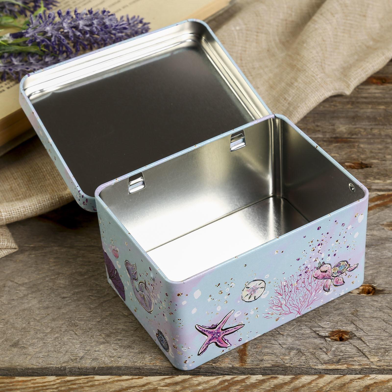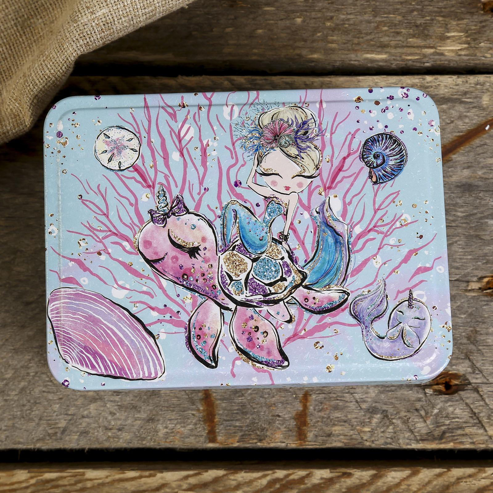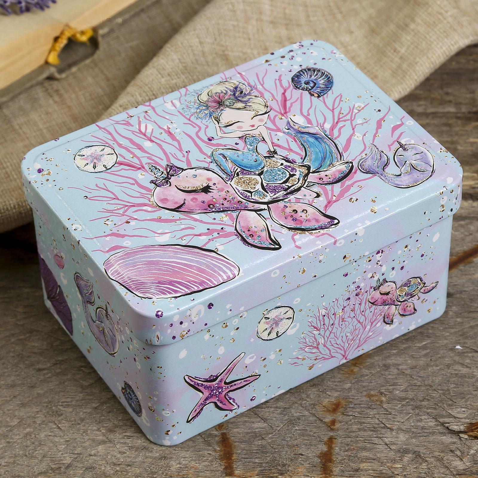 Шкатулка металл прямоугольная "Русалка на черепашке" 6,5х12,3х9,2 см