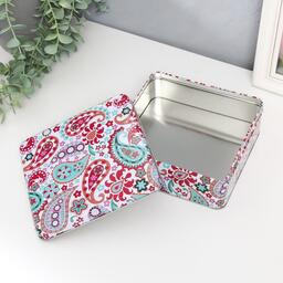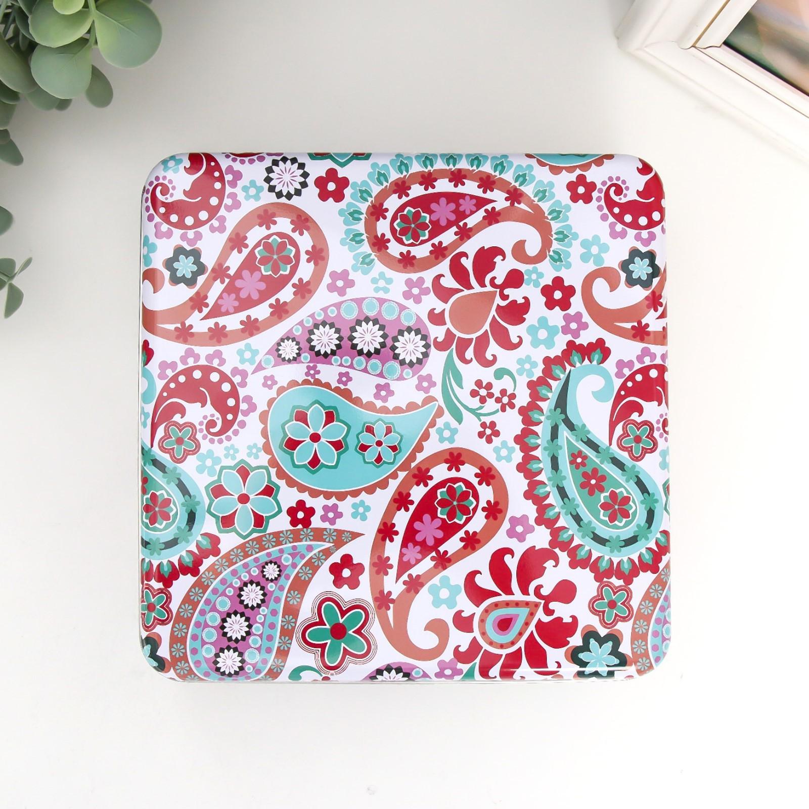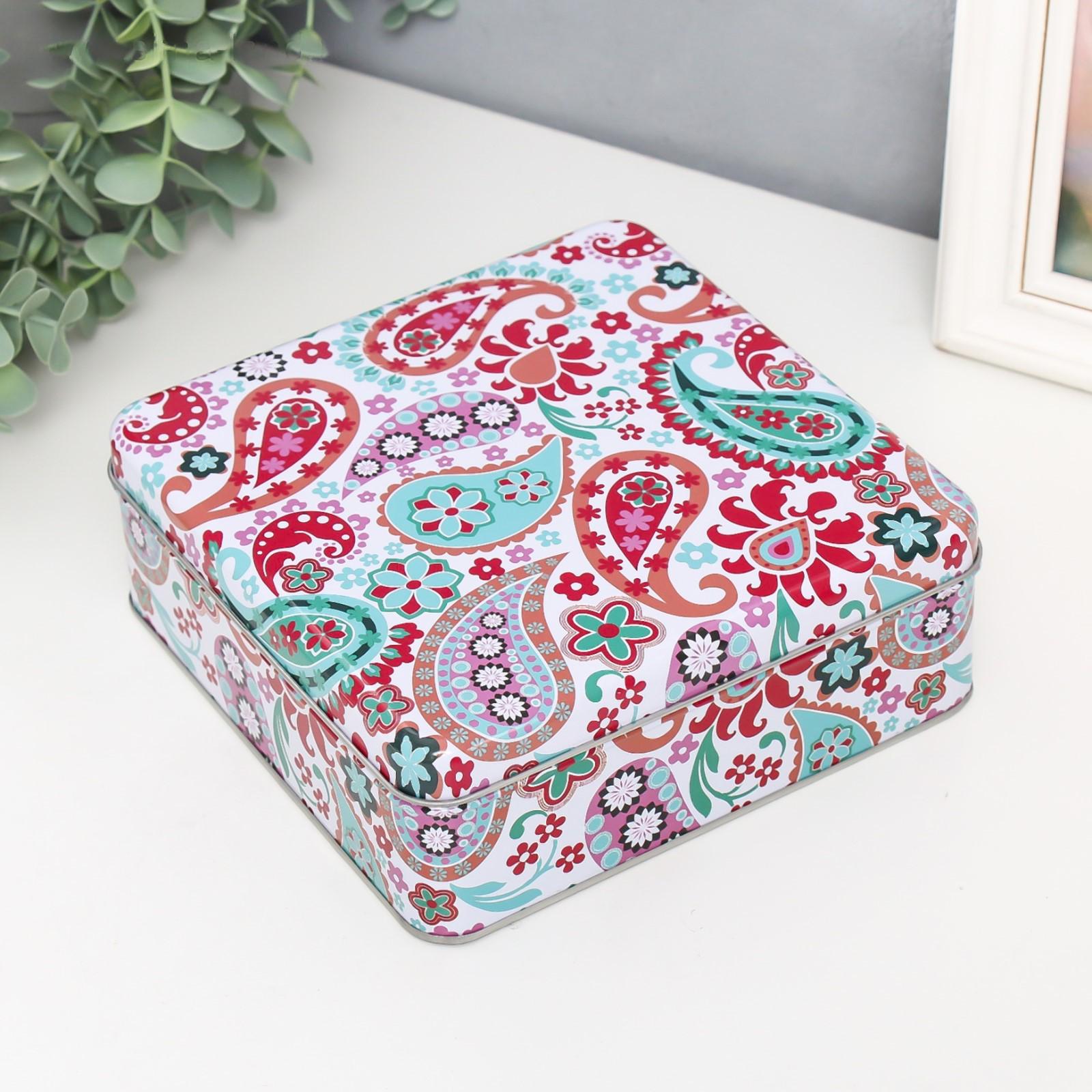 Шкатулка металл квадрат "Восточные огурцы и цветы" 5,8х17х17 см